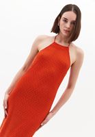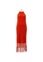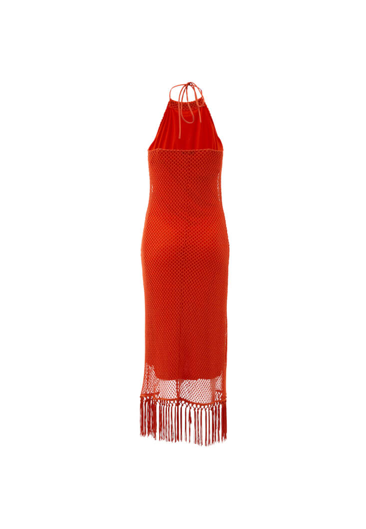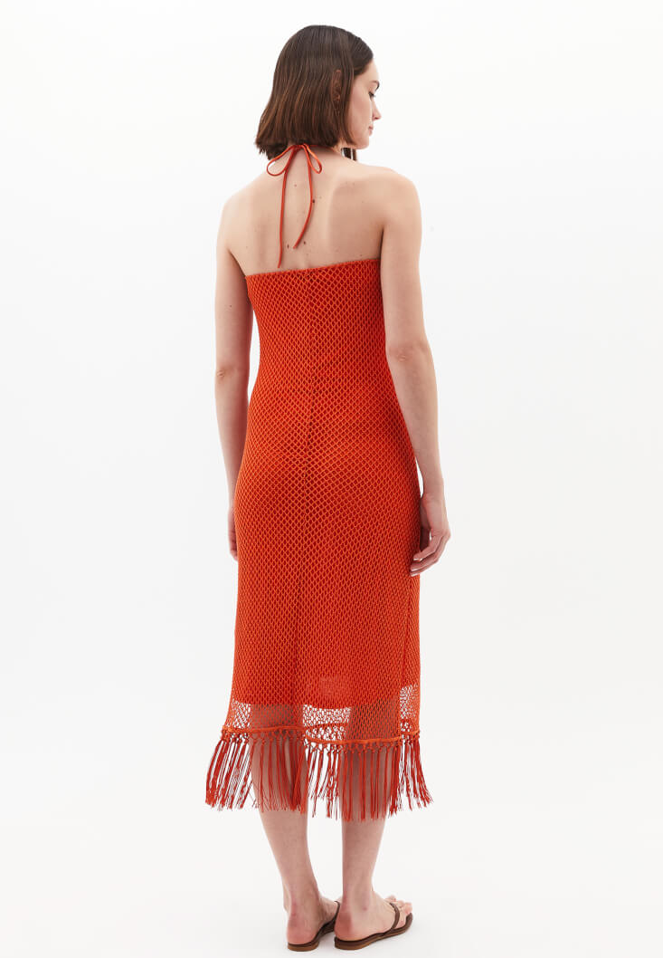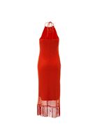 • Bayan Turuncu Halter Yaka Fileli Midi Elbise