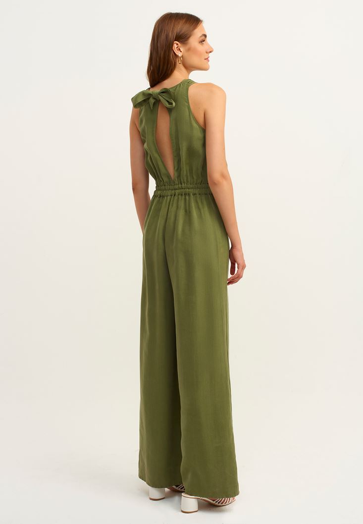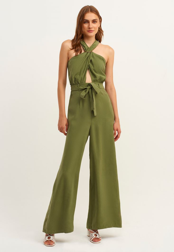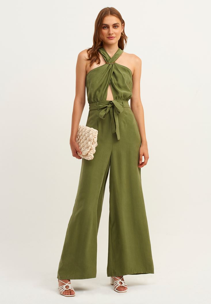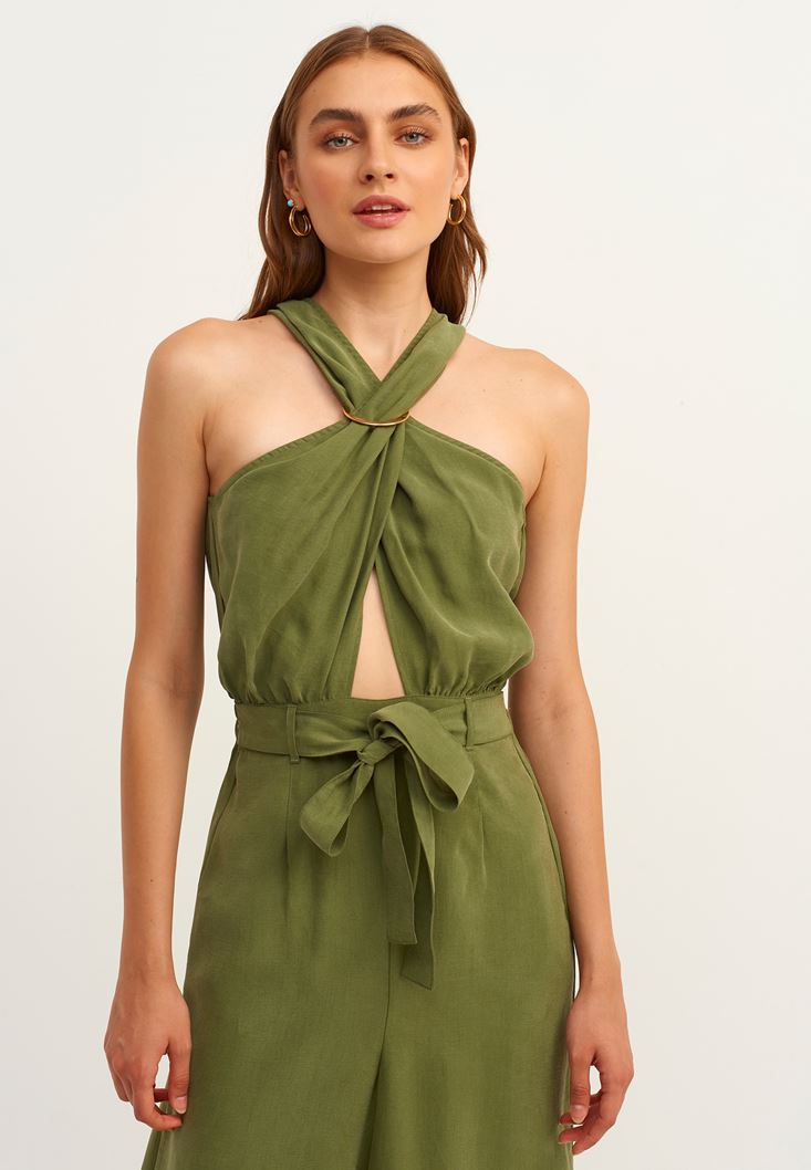 Yeşil Halter Yaka Kuşak Detaylı Tulum ( TENCEL™ )