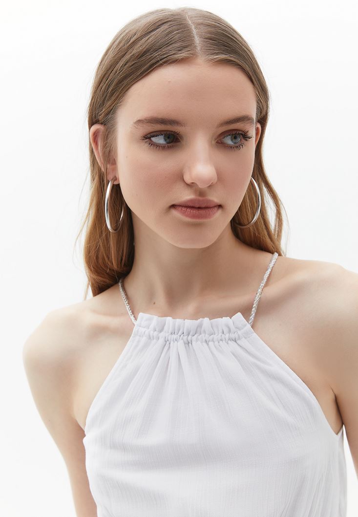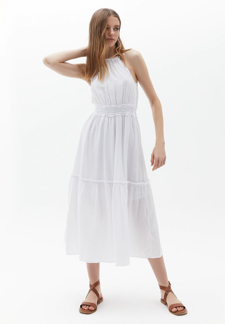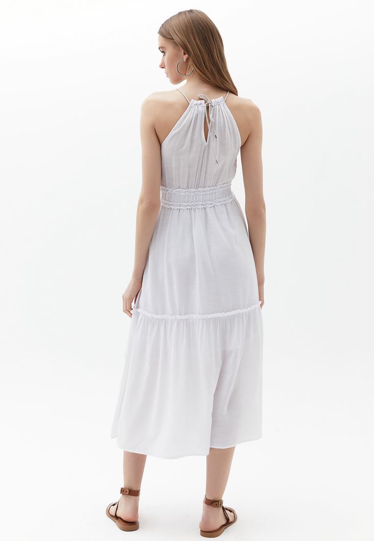 • Bayan Beyaz Halter Yaka Midi Boy Elbise