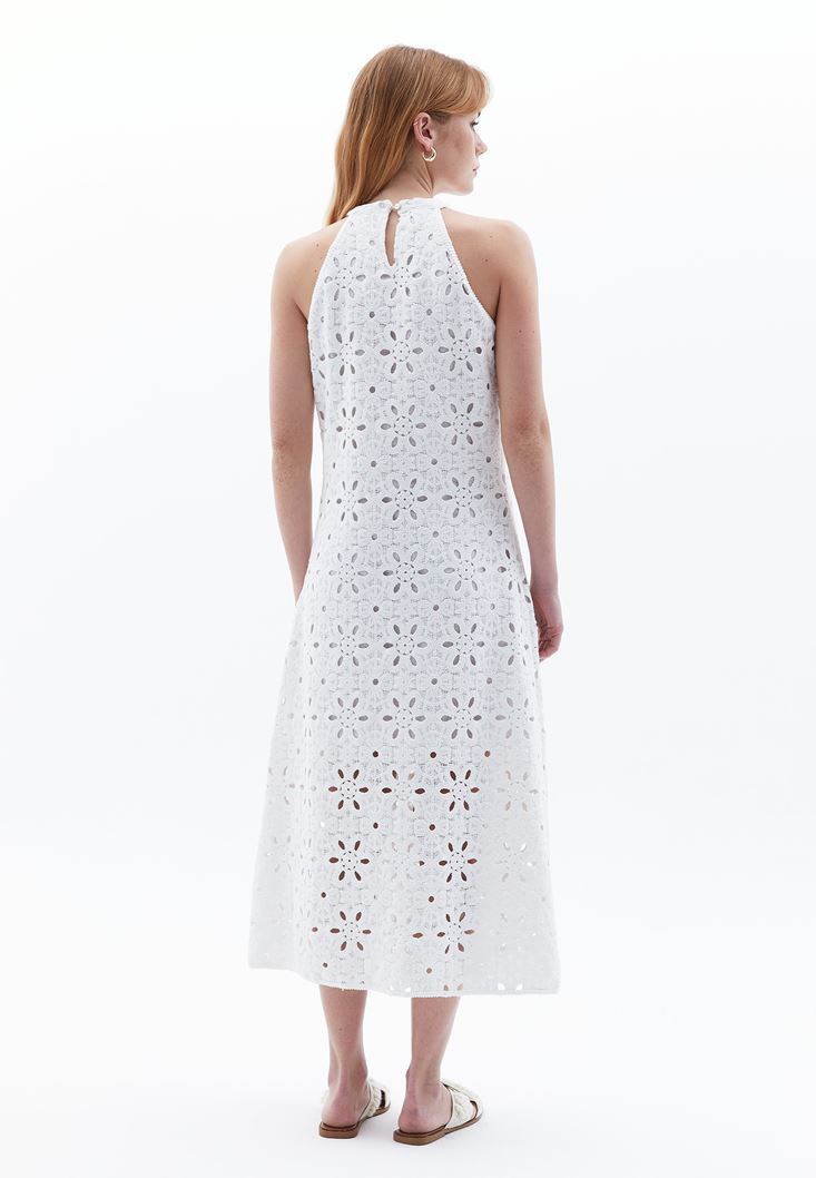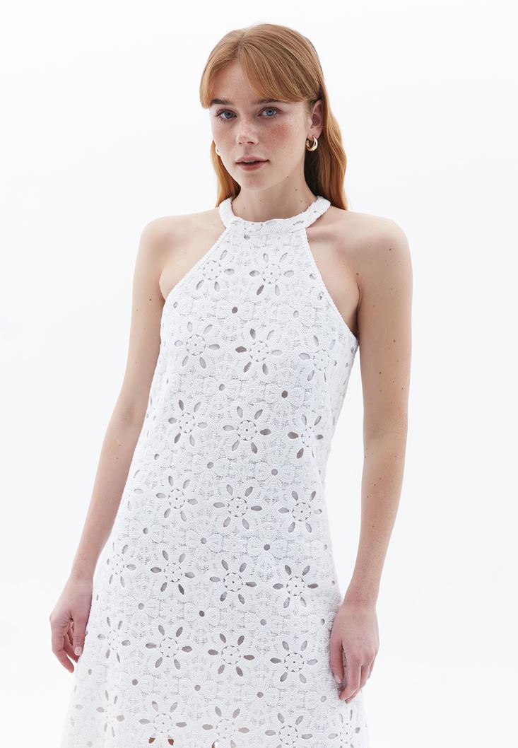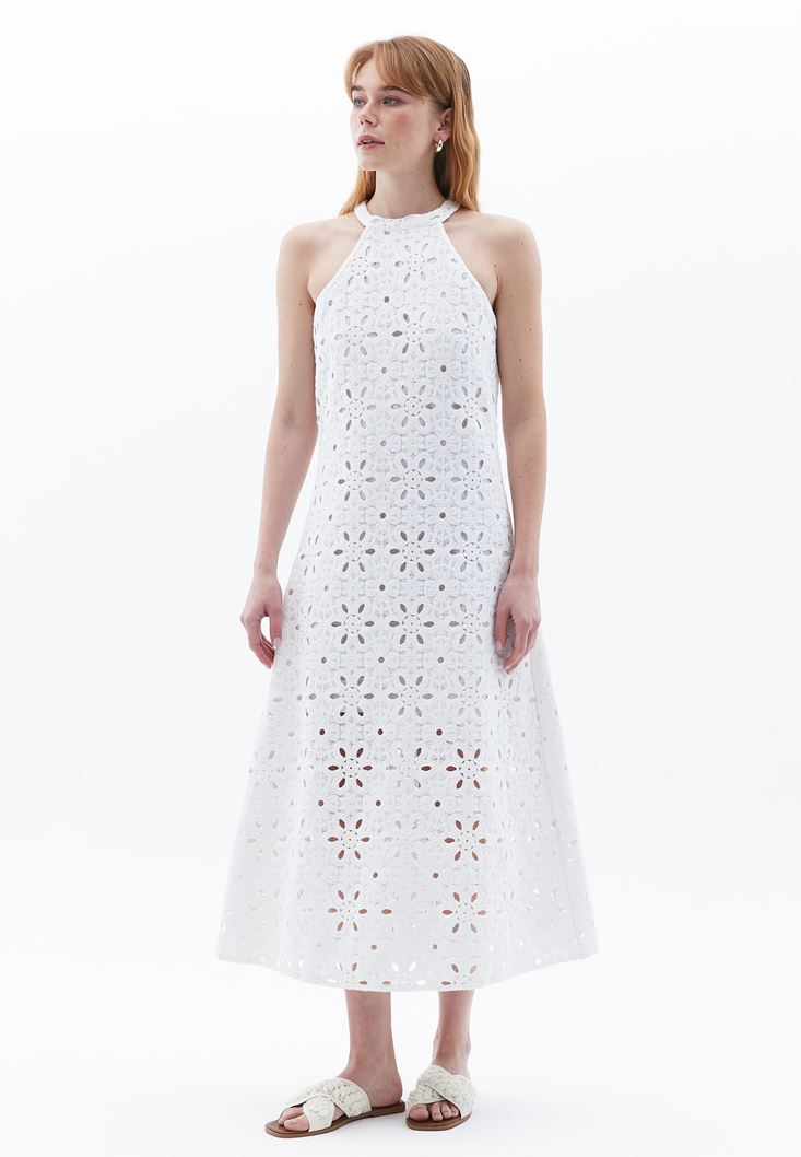Beyaz Halter Yaka Nakış Detaylı Elbise