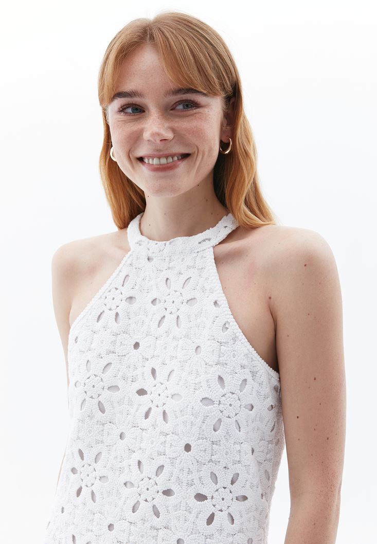 • Bayan Beyaz Halter Yaka Nakış Detaylı Elbise