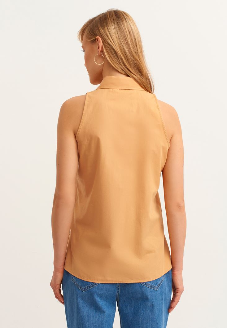 • Bayan Kahverengi Halter Yaka Poplin Gömlek