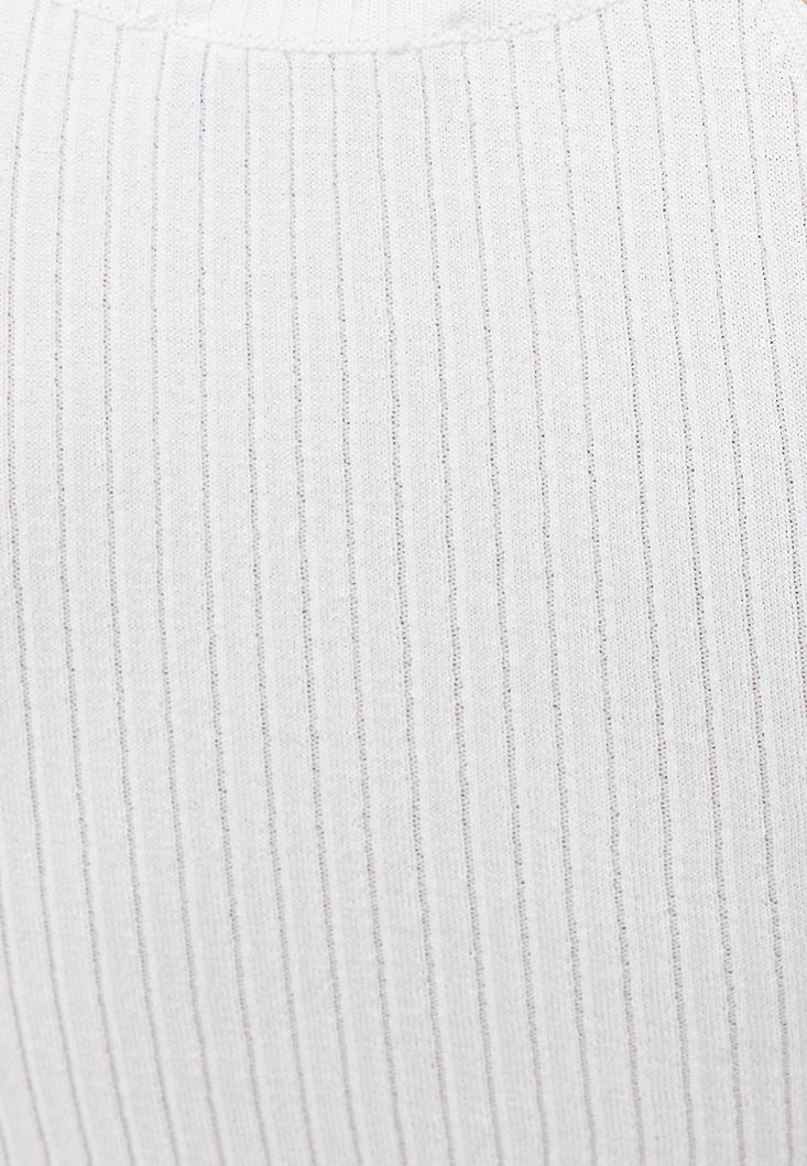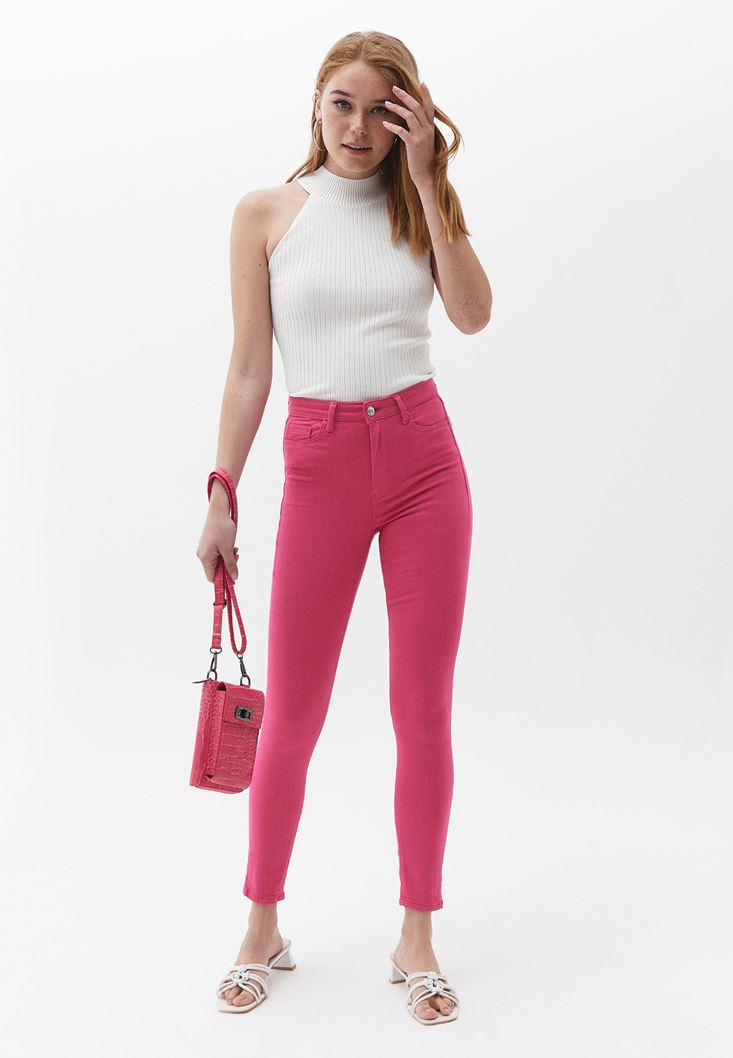 Viskon karışımlı triko, fitilli örgü, yüksek yaka, bedeni saran fit, crop kesim.