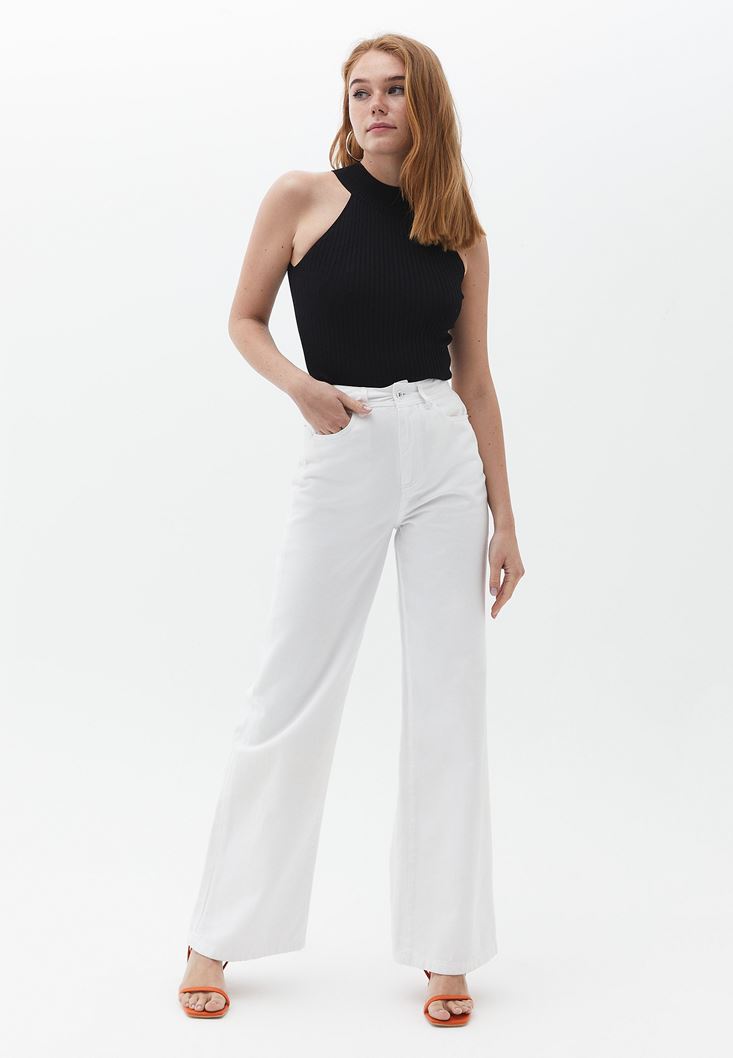 Viskon karışımlı triko, fitilli örgü, yüksek yaka, bedeni saran fit, crop kesim.