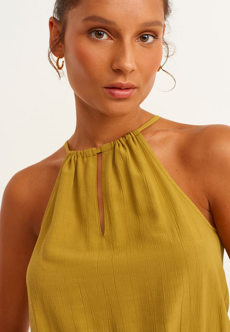 Fit: Relax / Yaka: Halter-Neck / Paça: Wide-Leg