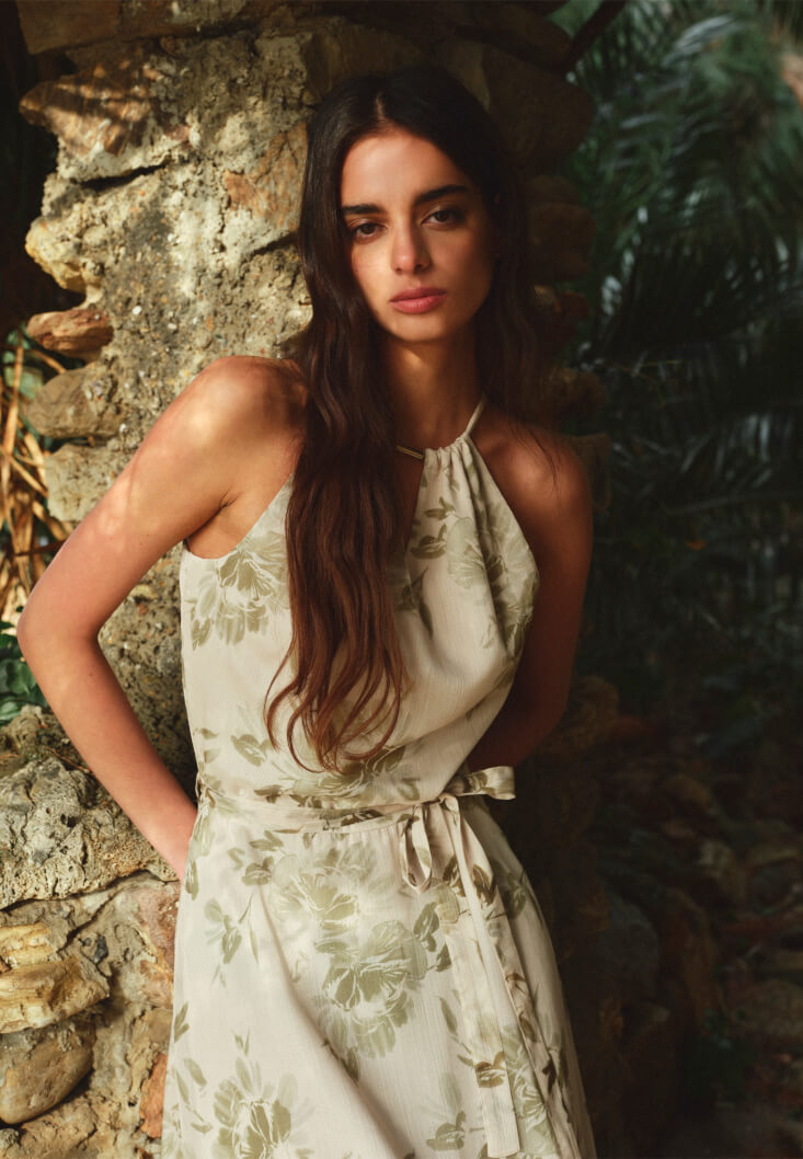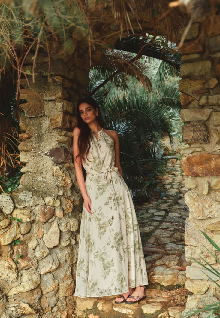 • Bayan Çok Renkli Halter Yaka Uzun Elbise