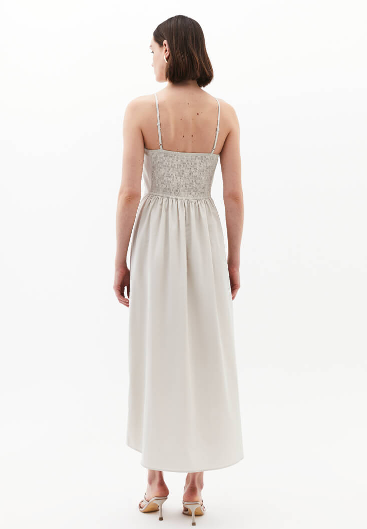 • Bayan Krem Halter Yaka Yırtmaçlı Elbise