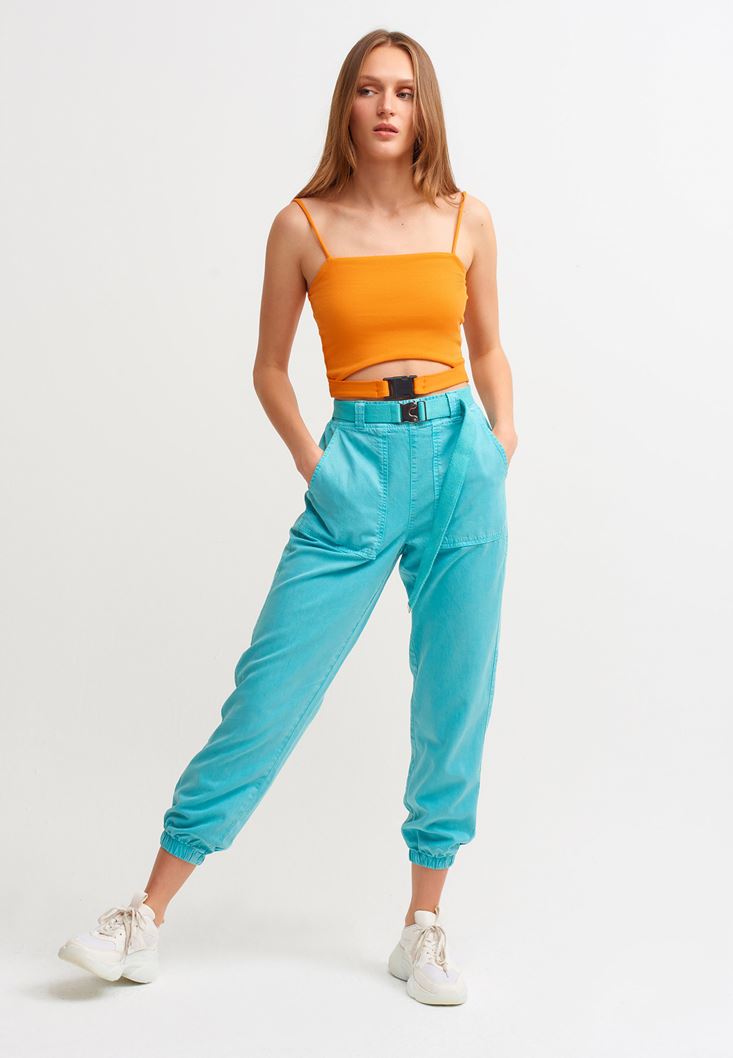 Toka Detaylı Crop Top Ve Bol Pantolon Kombini