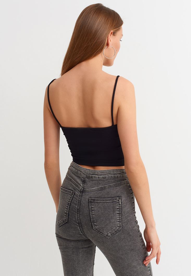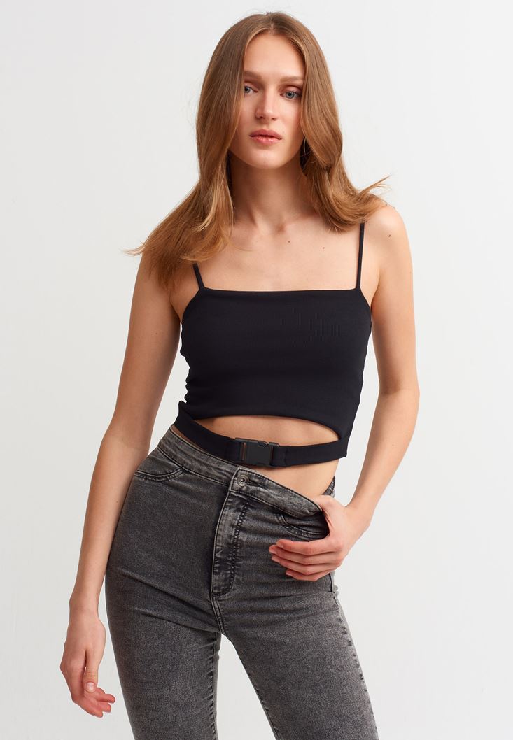 Cut-Out Toka Detaylı Crop Top