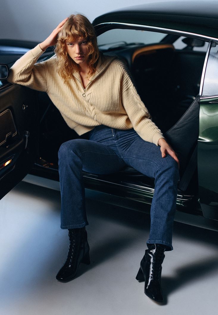 Pamuk içerikli denim doku, yüksek bel, boru paça, rahat ve esnek kalıp, bir beden ince gösteren push-up özellikli.