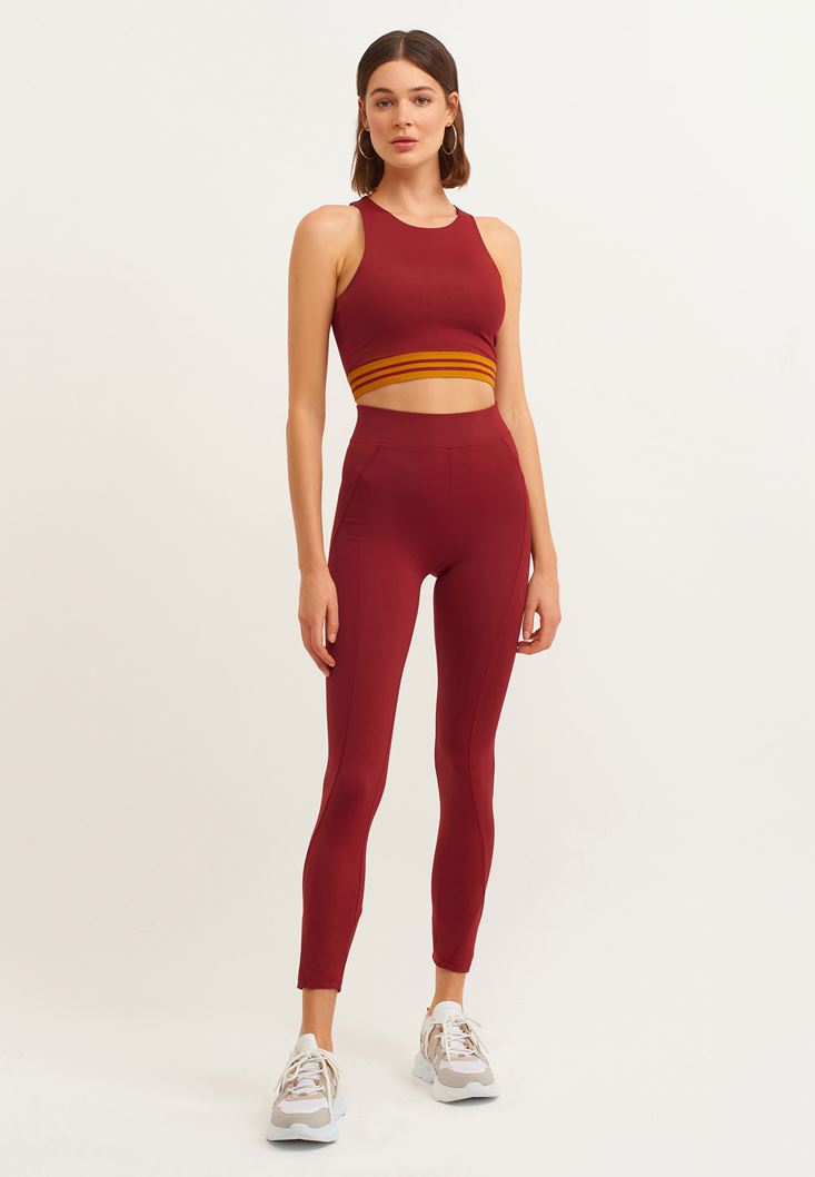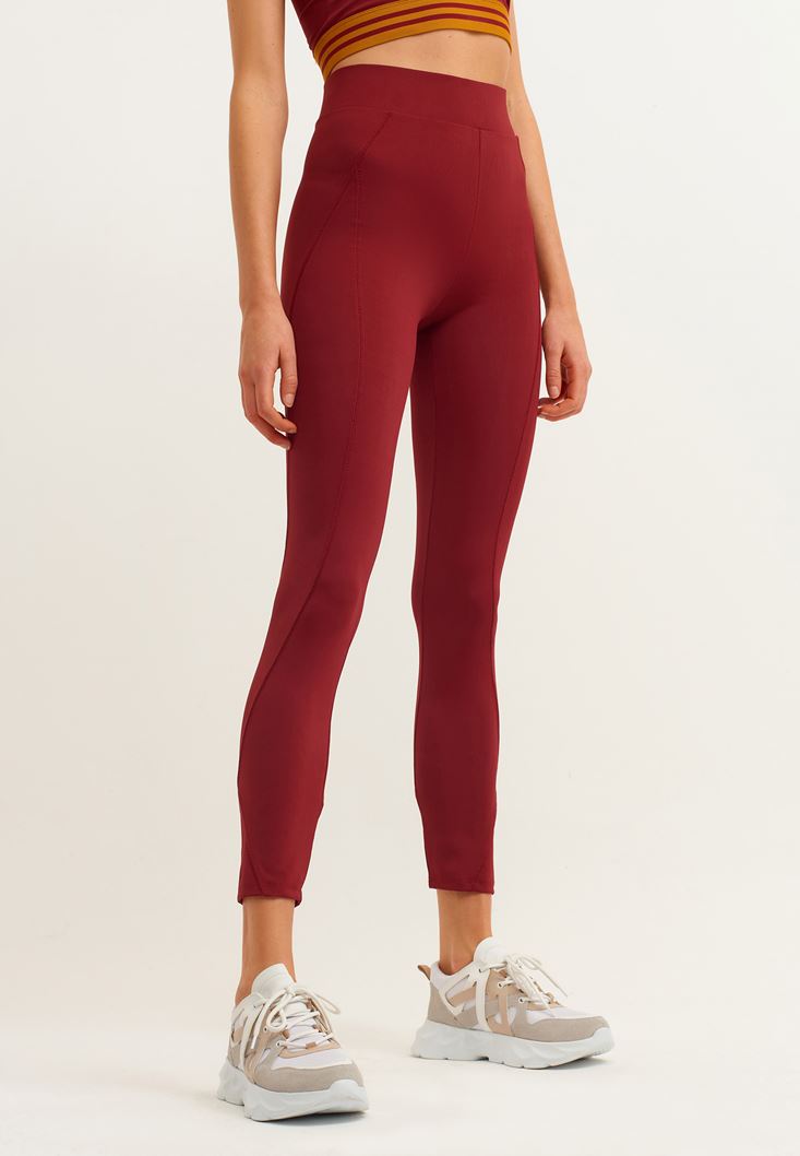 • Bayan Bordo High-Rise Esnek Dokulu Tayt