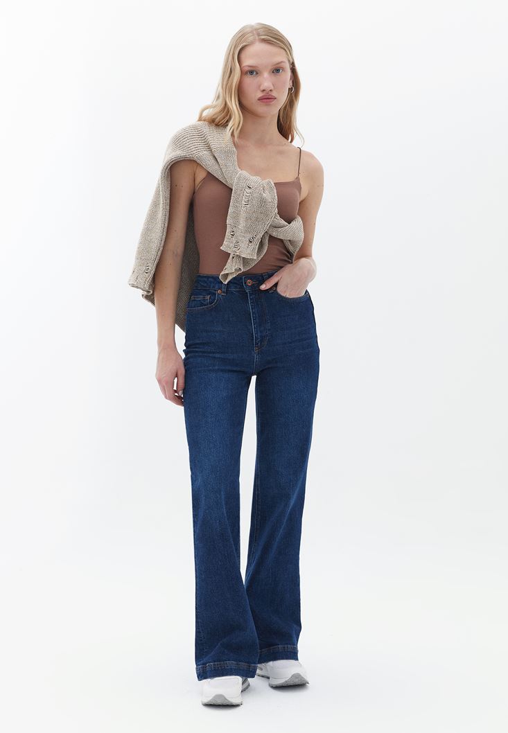 Pamuk içerikli fitilli doku, bedeni saran esnek fit, geniş yaka, standart boy, ince askılı.