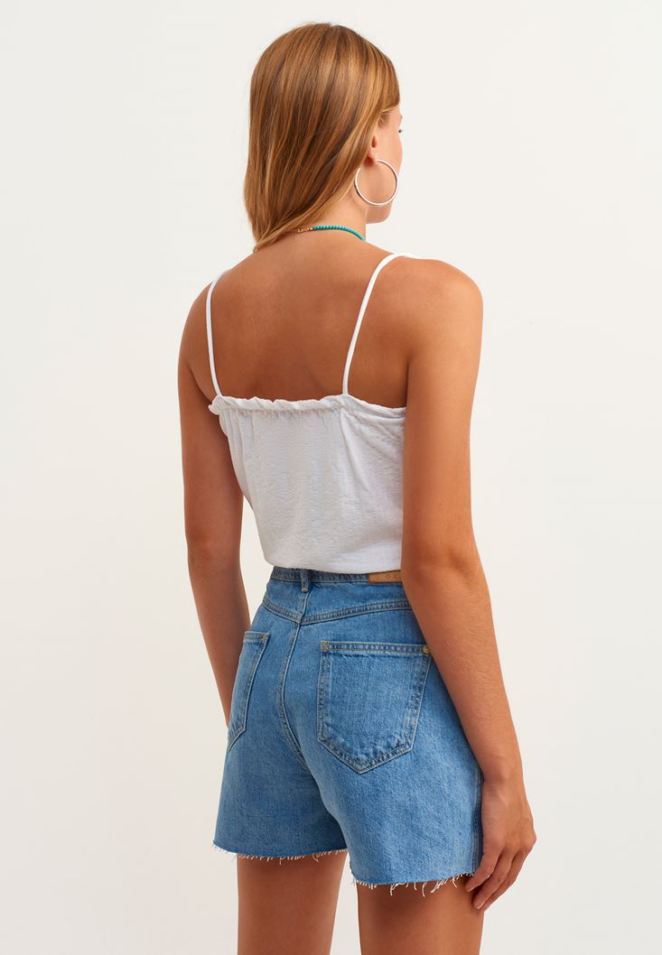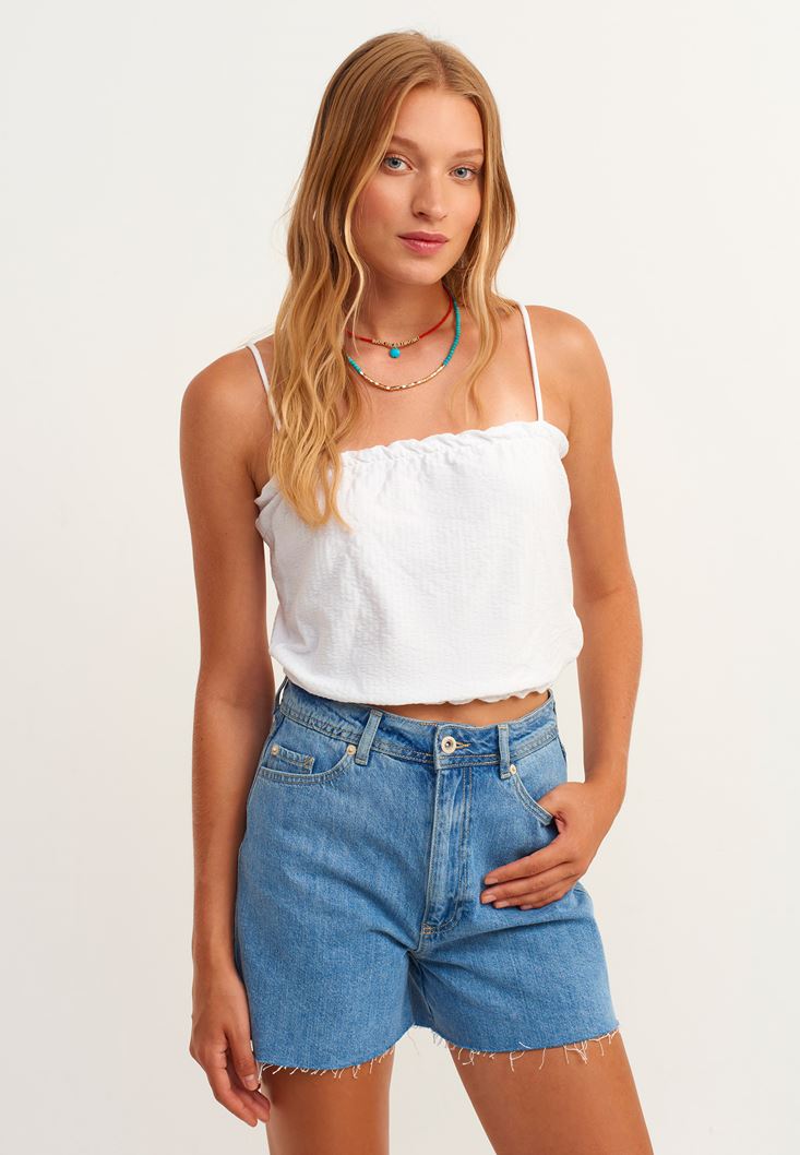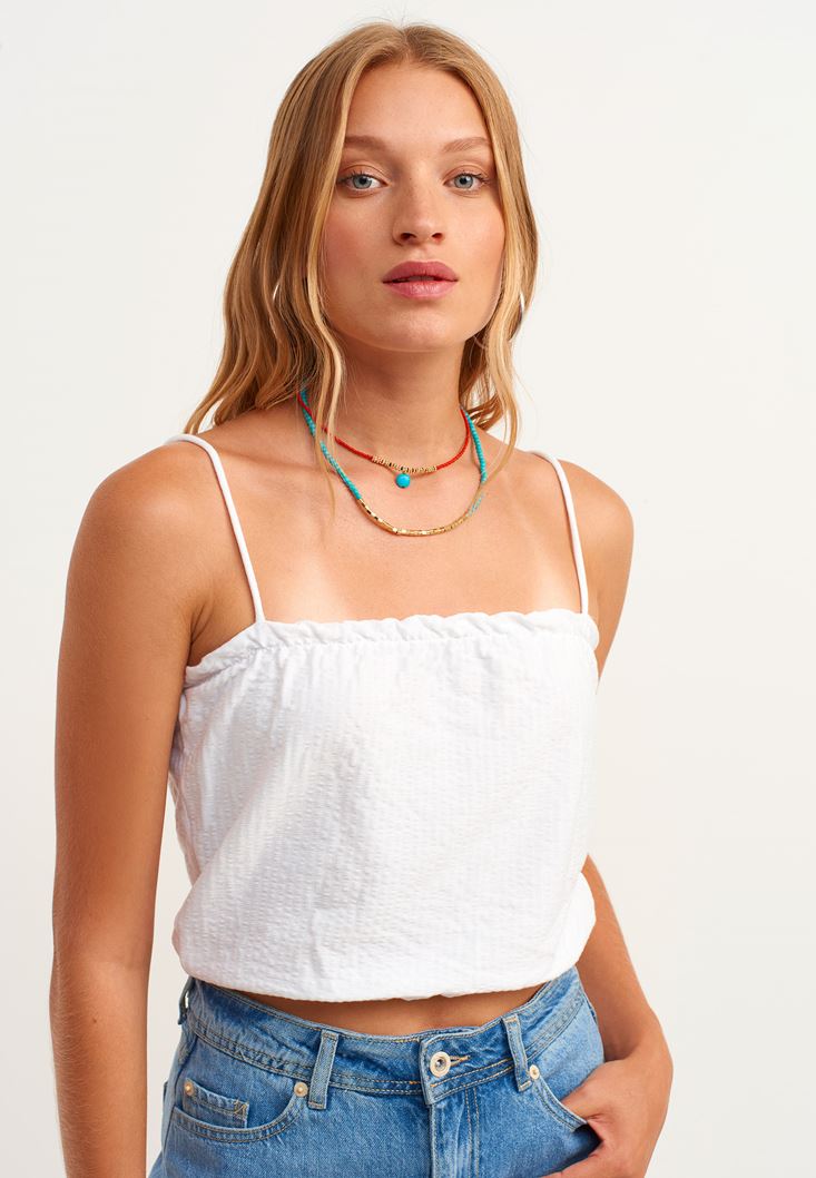 Beyaz İnce Askılı Crop Atlet
