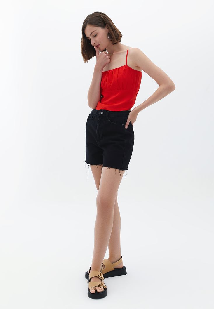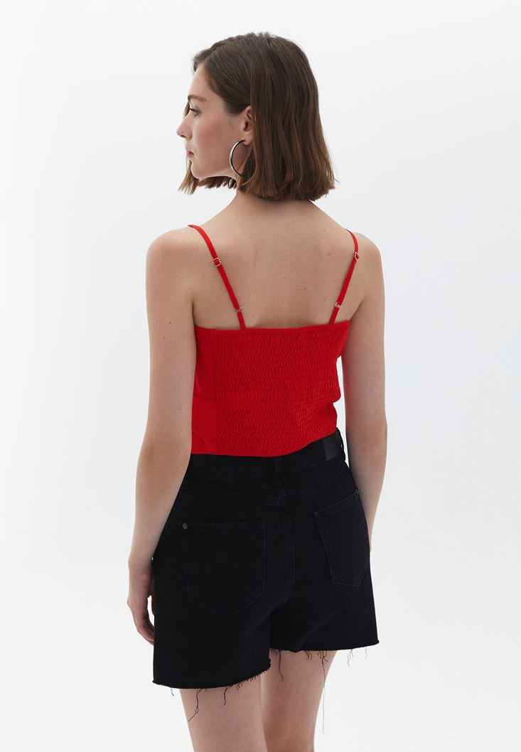 • Bayan Kırmızı İnce Askılı Crop Atlet