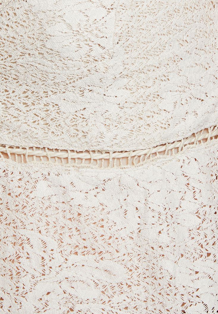 Krem İnce Askılı Dantel Detaylı Bluz