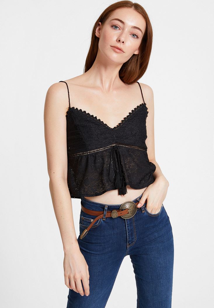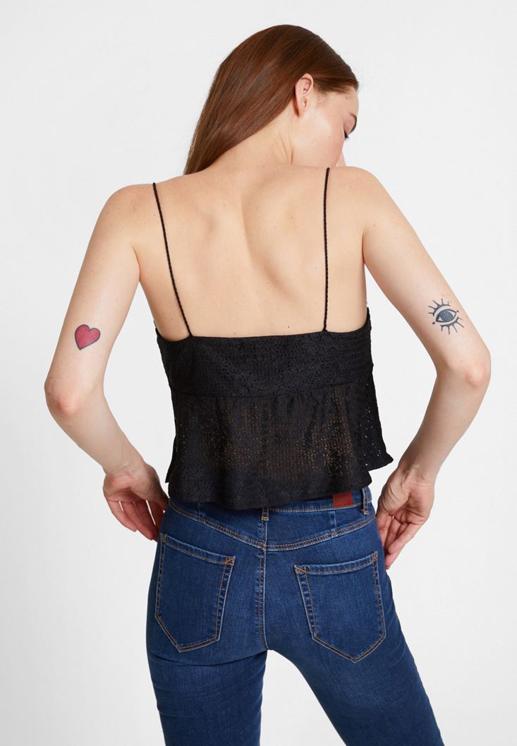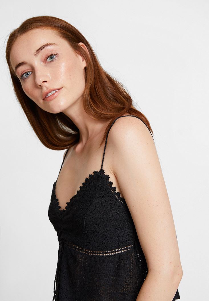 Siyah İnce Askılı Dantel Detaylı Bluz