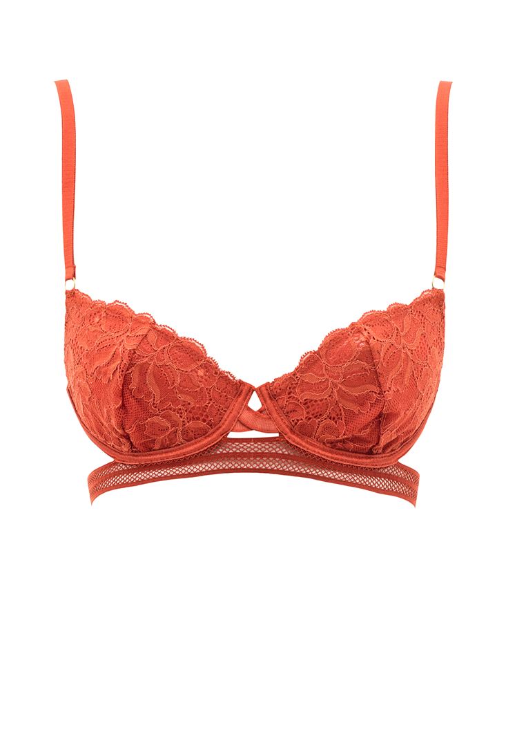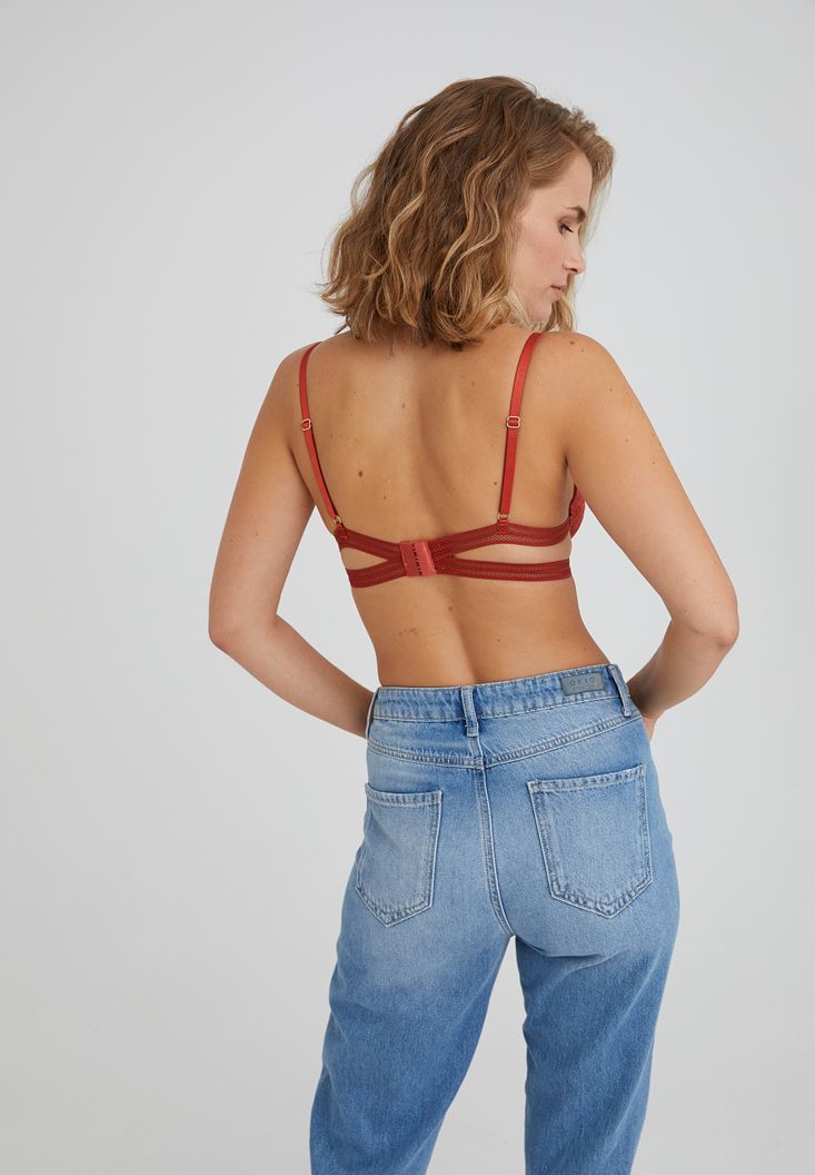 • Bayan Kırmızı İnce Askılı Dantel Detaylı Büstiyer