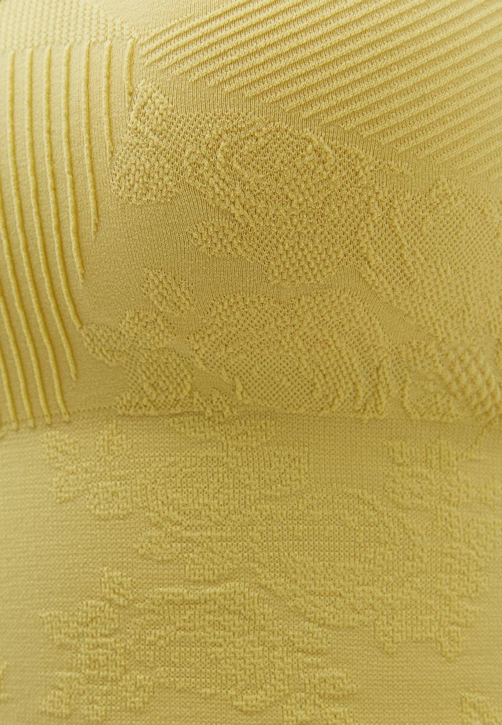 Seamless teknolojisi ile tasarlanmış ekstra esnek doku, bedeni saran fit, ince askılı, jakarlı özel doku, V yaka, crop kesim, göğüs kısmı pedli.