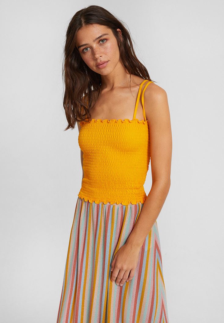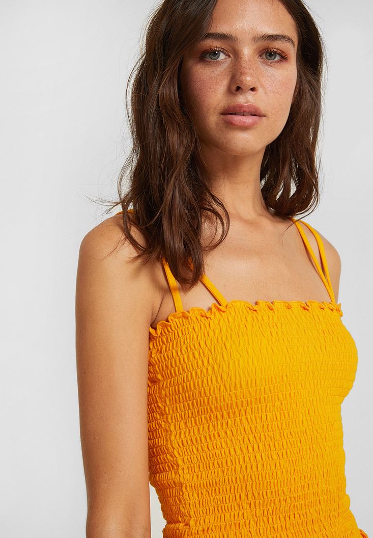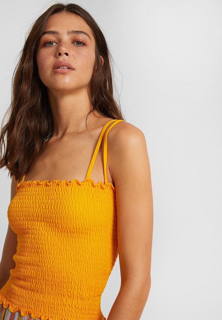 Sarı İnce Askılı Gipeli Bluz