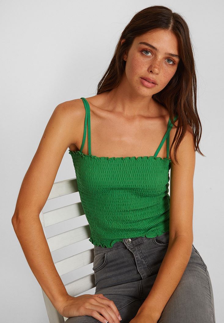 • Bayan Yeşil İnce Askılı Gipeli Bluz