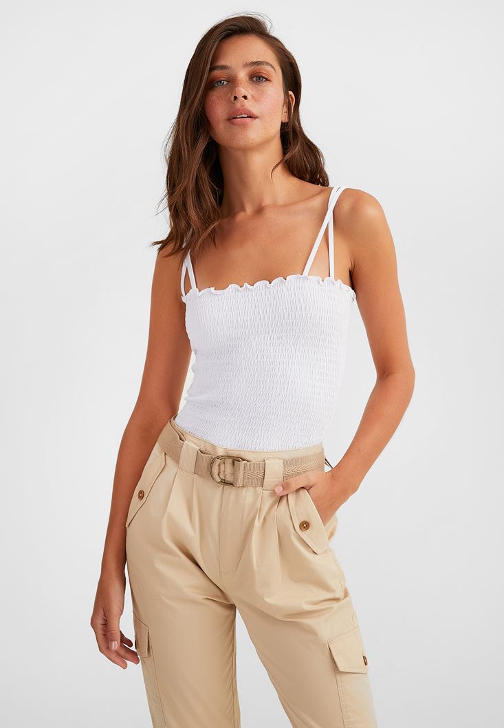 • Bayan Beyaz İnce Askılı Gipeli Bluz