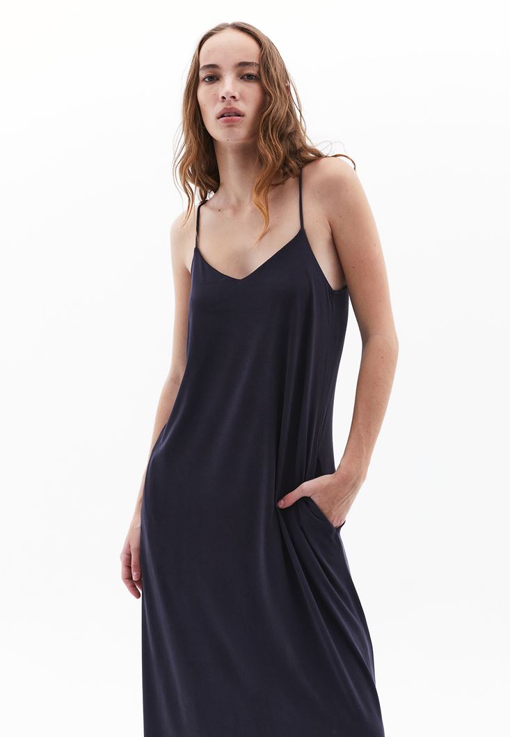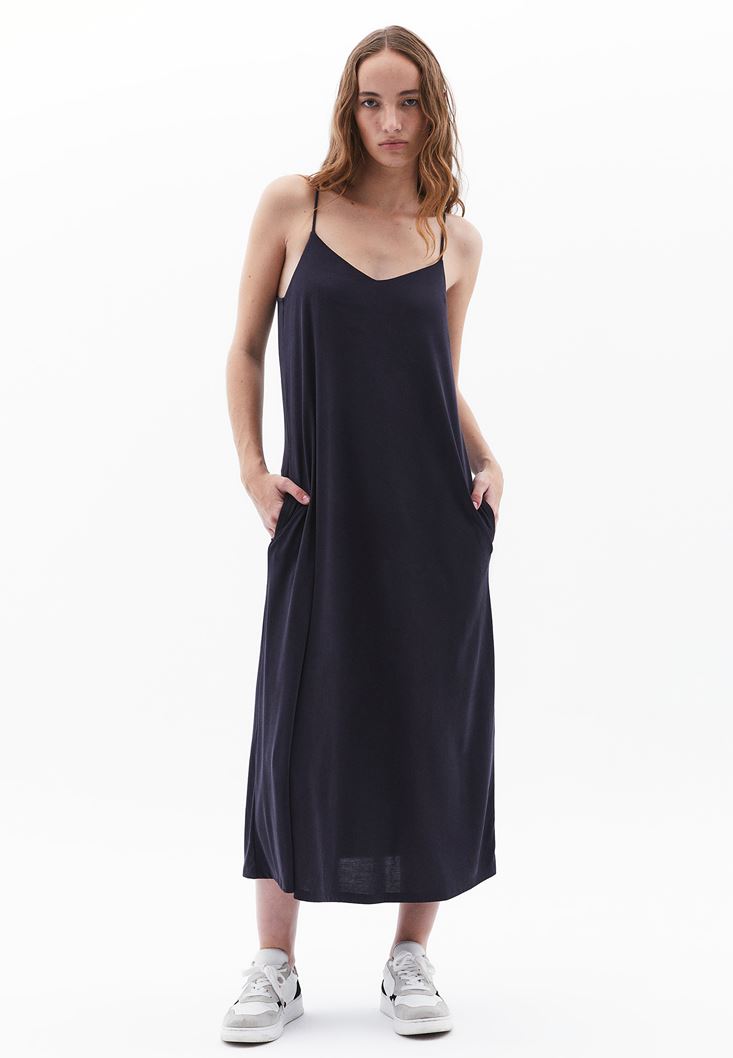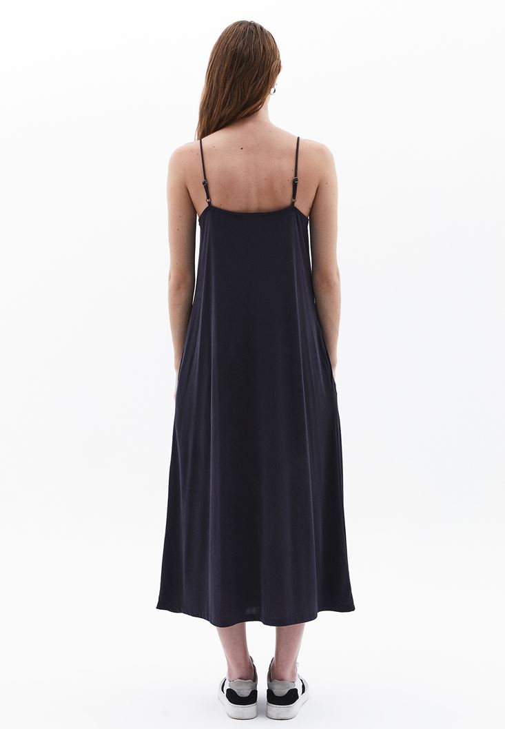 Lacivert İnce Askılı Midi Elbise ( TENCEL )
