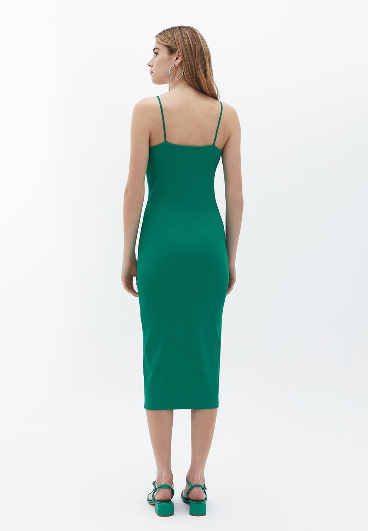 Yeşil İnce Askılı Midi Elbise