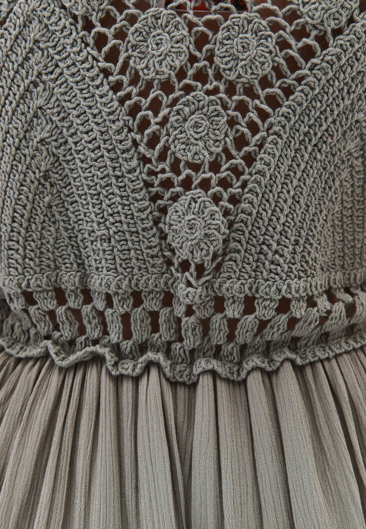 • Örme üst detay + etek boyunca nakış: romantik ve el işçiliği dokunuşu