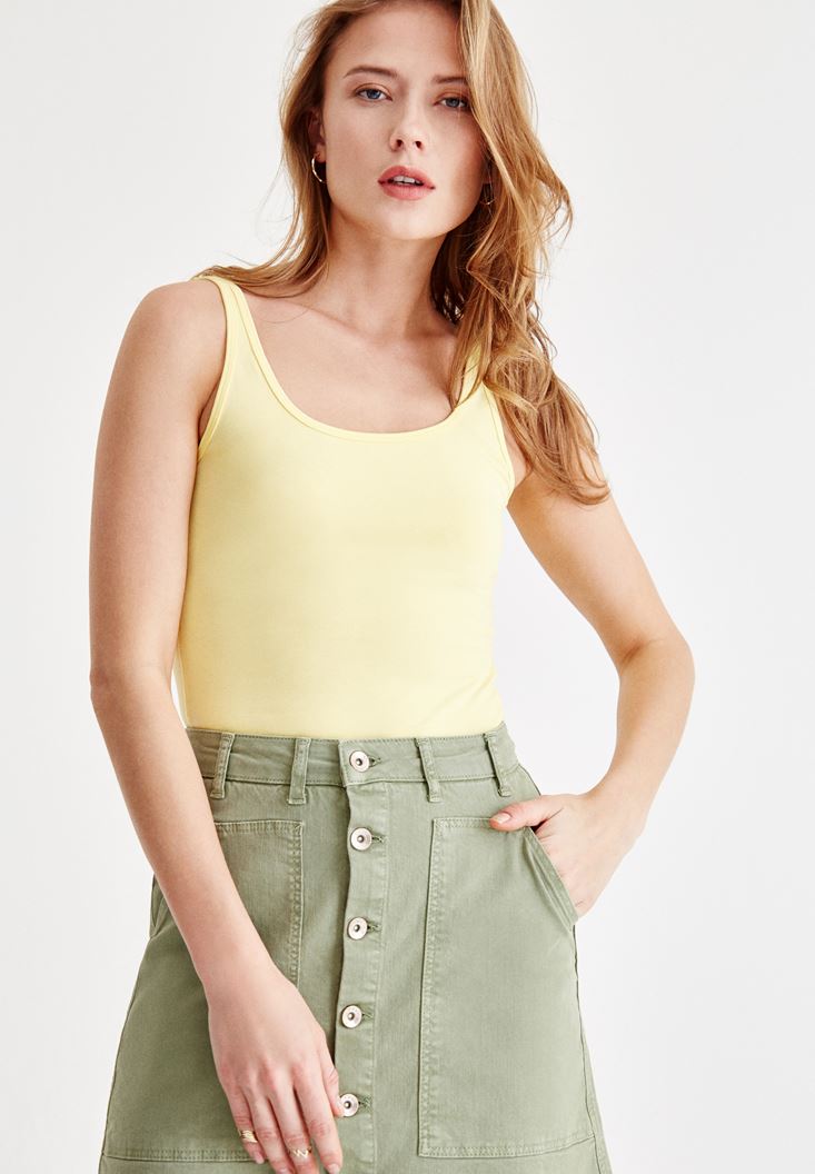 • Bayan Sarı İnce Askılı U Yaka Bluz