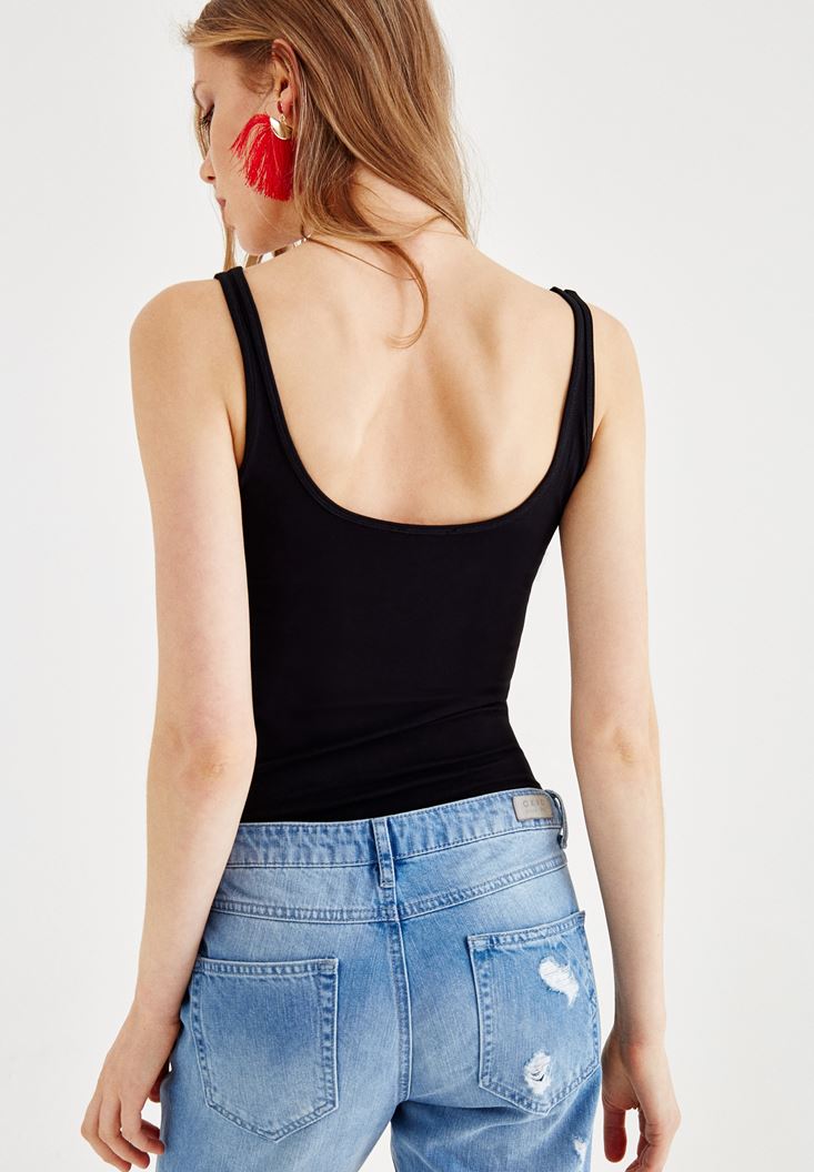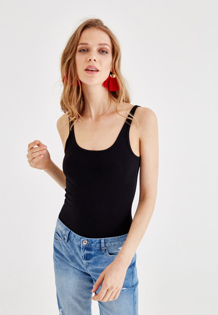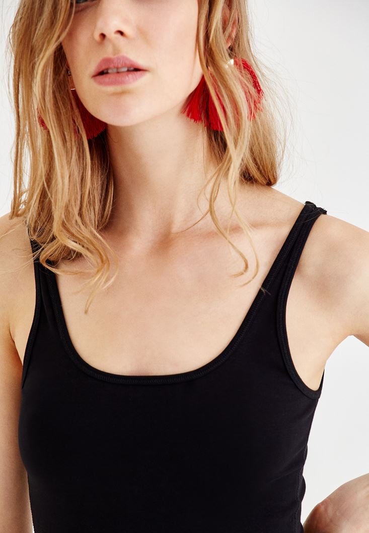 • Bayan Siyah İnce Askılı U Yaka Bluz