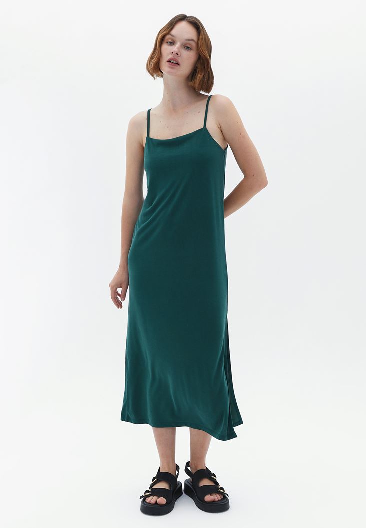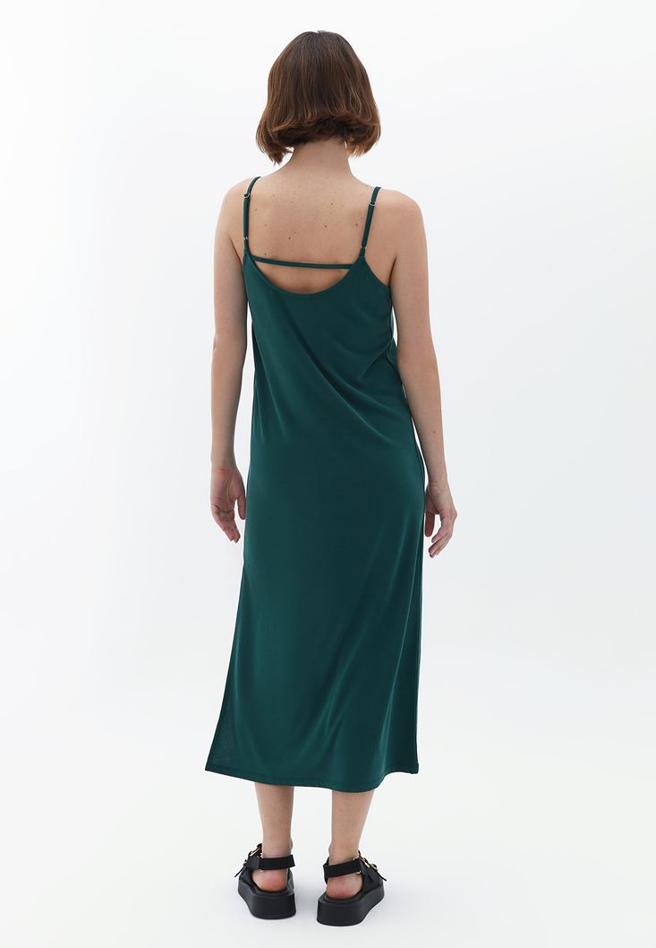 Yeşil İnce Askılı Uzun Elbise ( MODAL )