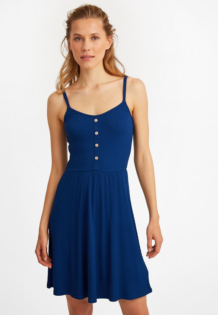 Lacivert İnce Askılı V Yaka Elbise