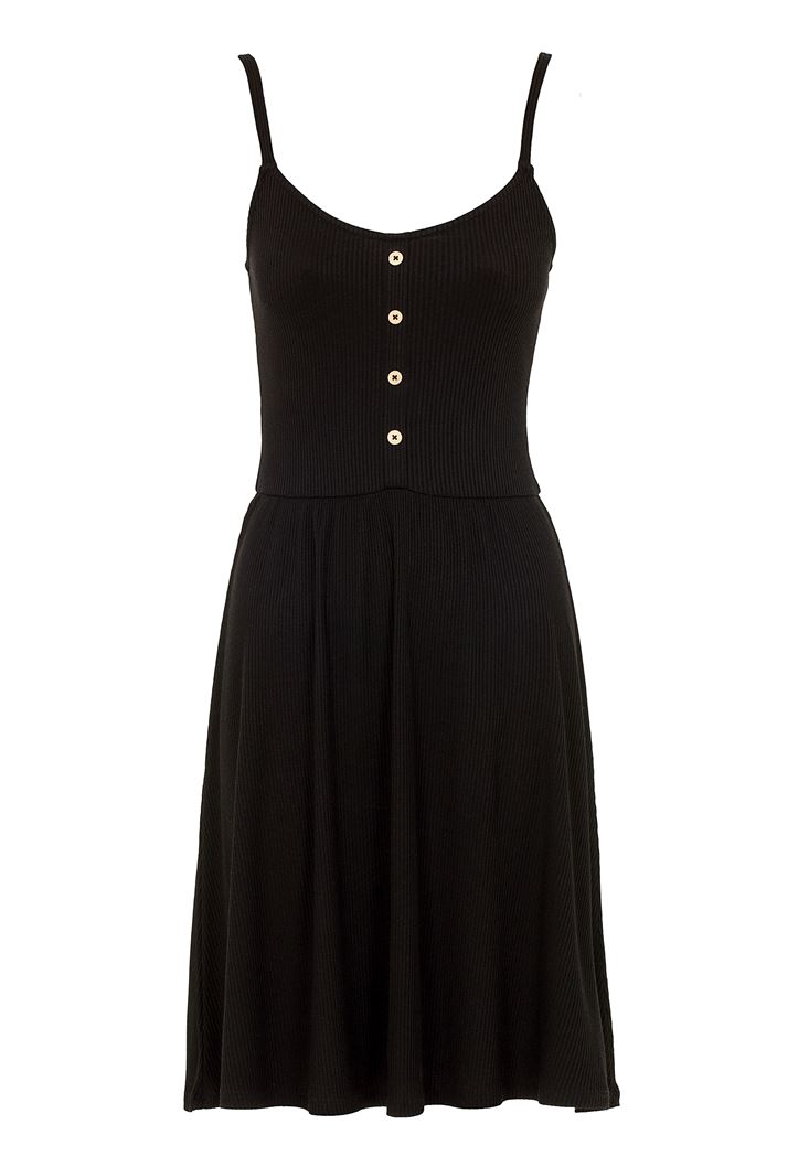 • Bayan Siyah İnce Askılı V Yaka Elbise