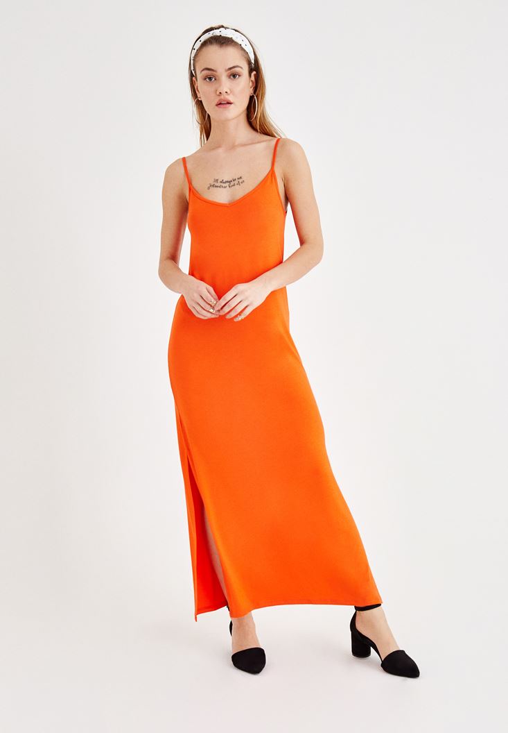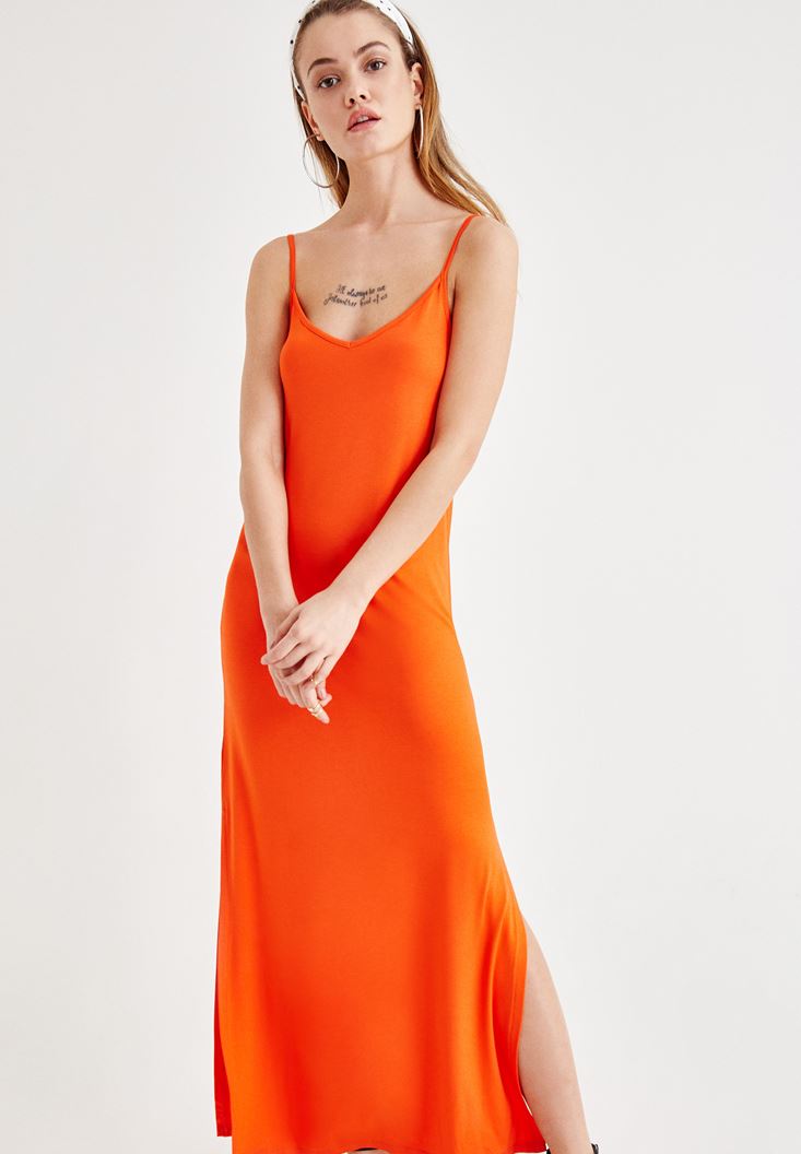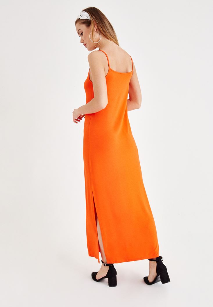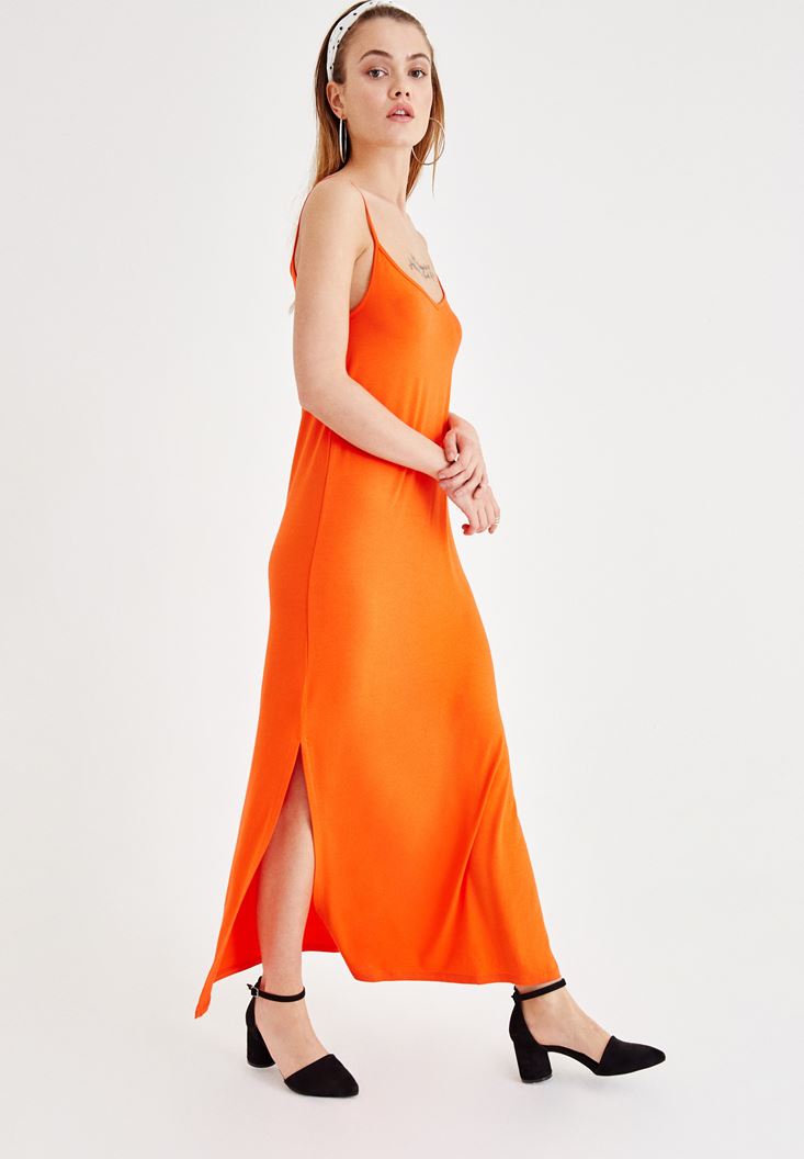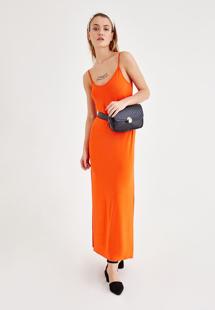 Oxxo İnce Askılı Yırtmaç Detaylı Uzun Elbise 2073483084