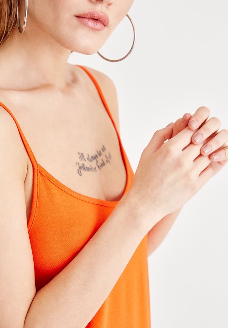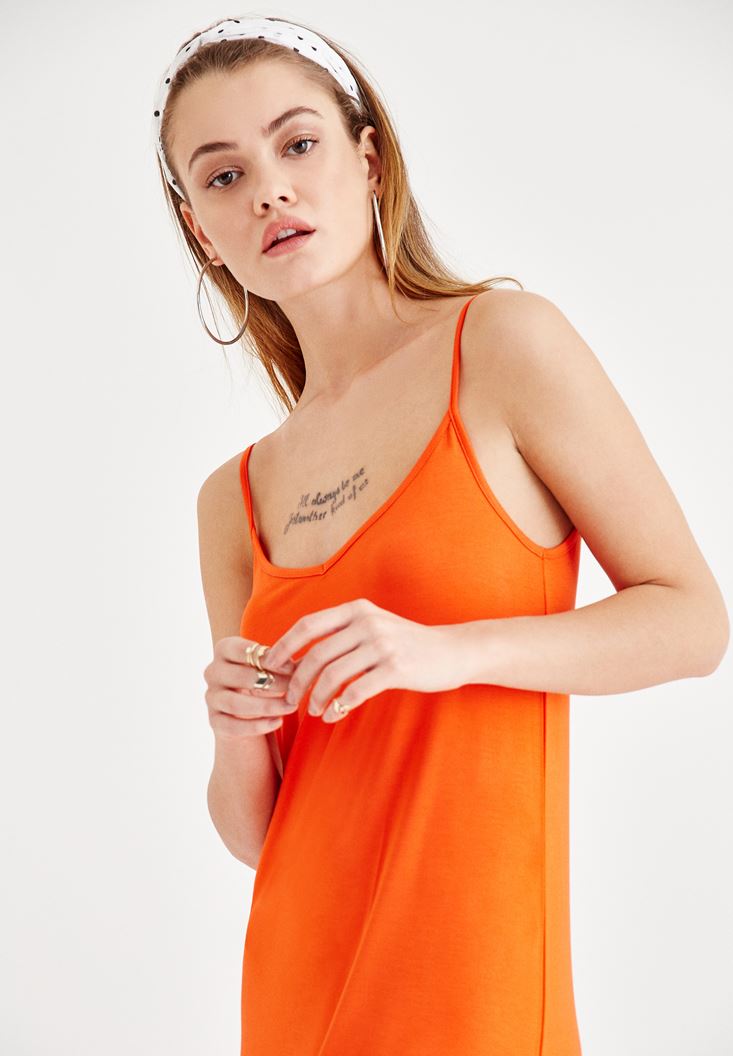 Ince Askili Yirtmaç Detayli Uzun Elbise modeli sahip oldugu zarif kesim ve sade tasarim ile her zaman kullanmaktan keyif alacaginiz parçalardan birisi olacak. Ince askili tasarim U yaka kesimi ile zarif bir dekolte sunuyor. Sirt kisminda kullanilan yarim pencere dekolte de tasarima hos bir hava kazandirirken sadeligi ile dikkat çeken bu elbise modeli ufak aksesuar dokunuslari ile çok farkli tarzlara sahip olabilecek bu nedenle de dolabinizin kurtarici parçalari arasinda yer alacak özel bir tasarim. Diz hizasindan baslayan yirtmaç detayi ile hareket kazanan elbise tasarimi bu detay ile kullanim rahatligi da sunuyor. Viskon dokusu ile yüksek nem emicilige ve nem transfer etme özelligine sahip olan elbise modeli, OXXO'nun konfor ve sikligi bir araya getirdigi tasarimlar arasinda yer aliyor.