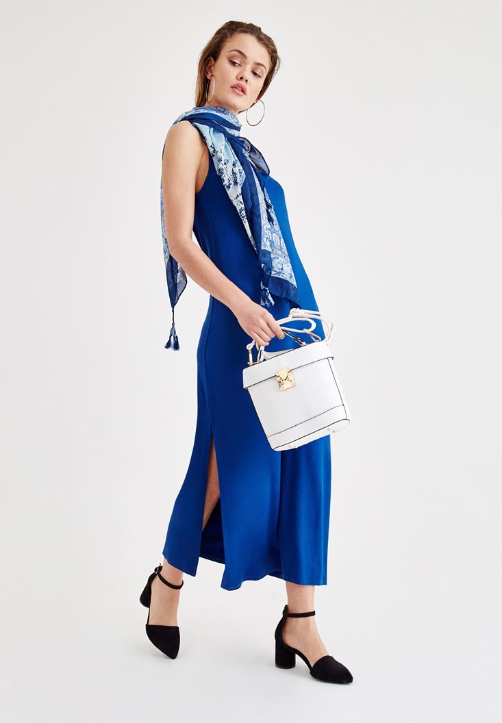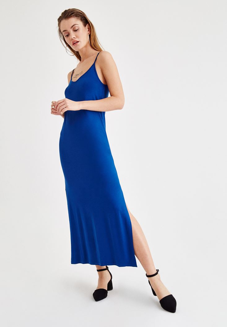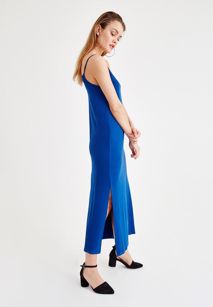 Oxxo İnce Askılı Yırtmaç Detaylı Uzun Elbise 2073481283