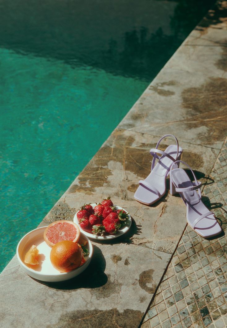 • Bayan Lila İnce Bantlı Topuklu Ayakkabı