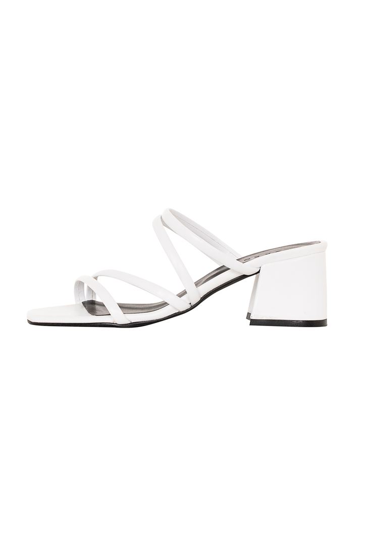 • Bayan Beyaz İnce Bantlı Topuklu Terlik