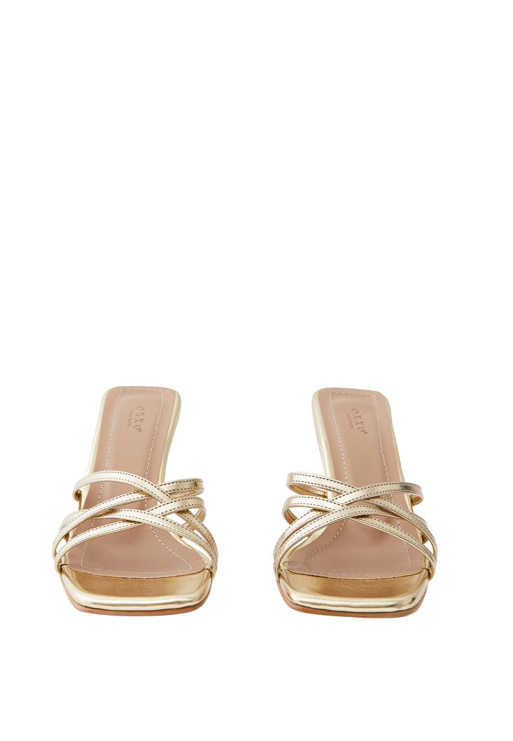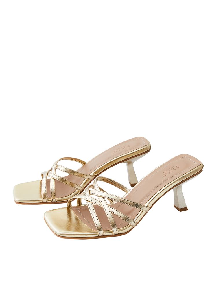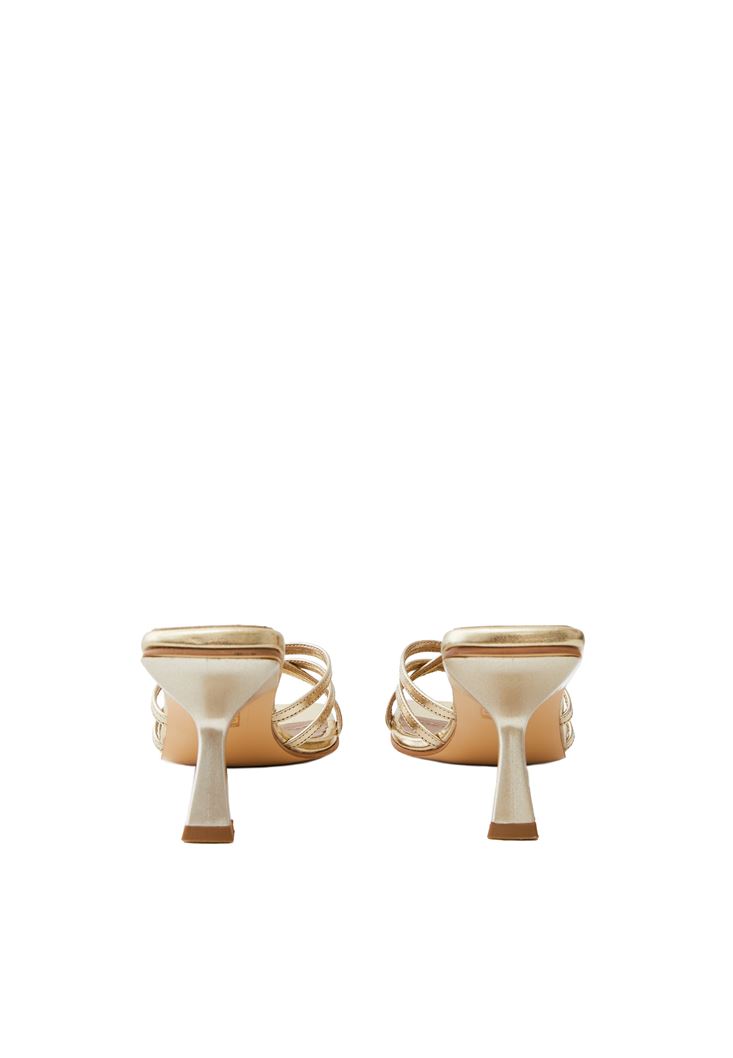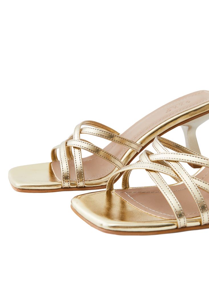 • Bayan Altın İnce Bantlı Topuklu Terlik