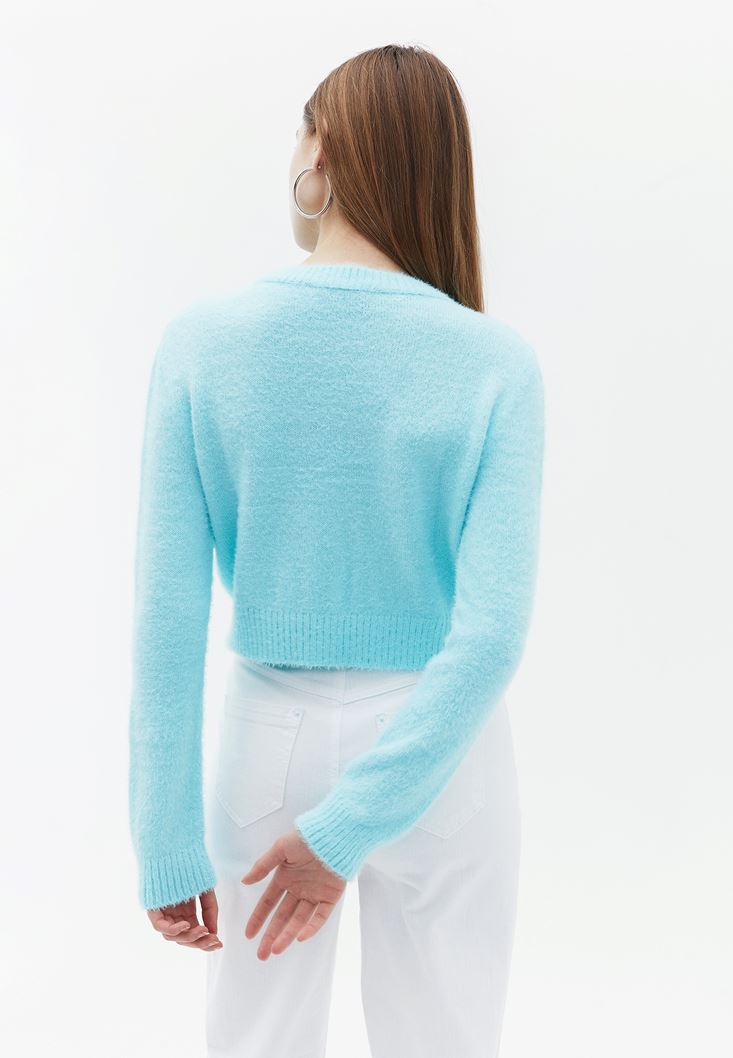 • Bayan Mavi İnci Detaylı Triko Kazak