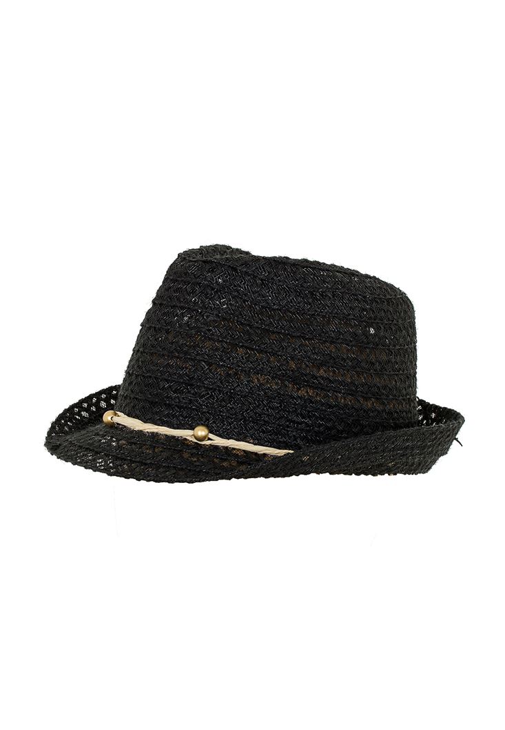 • Bayan Siyah İp Detaylı Hasır Şapka
