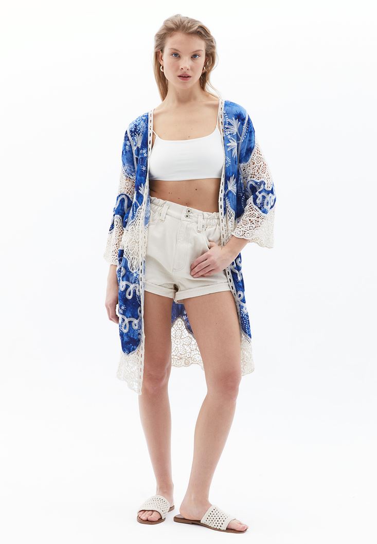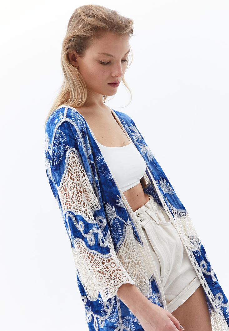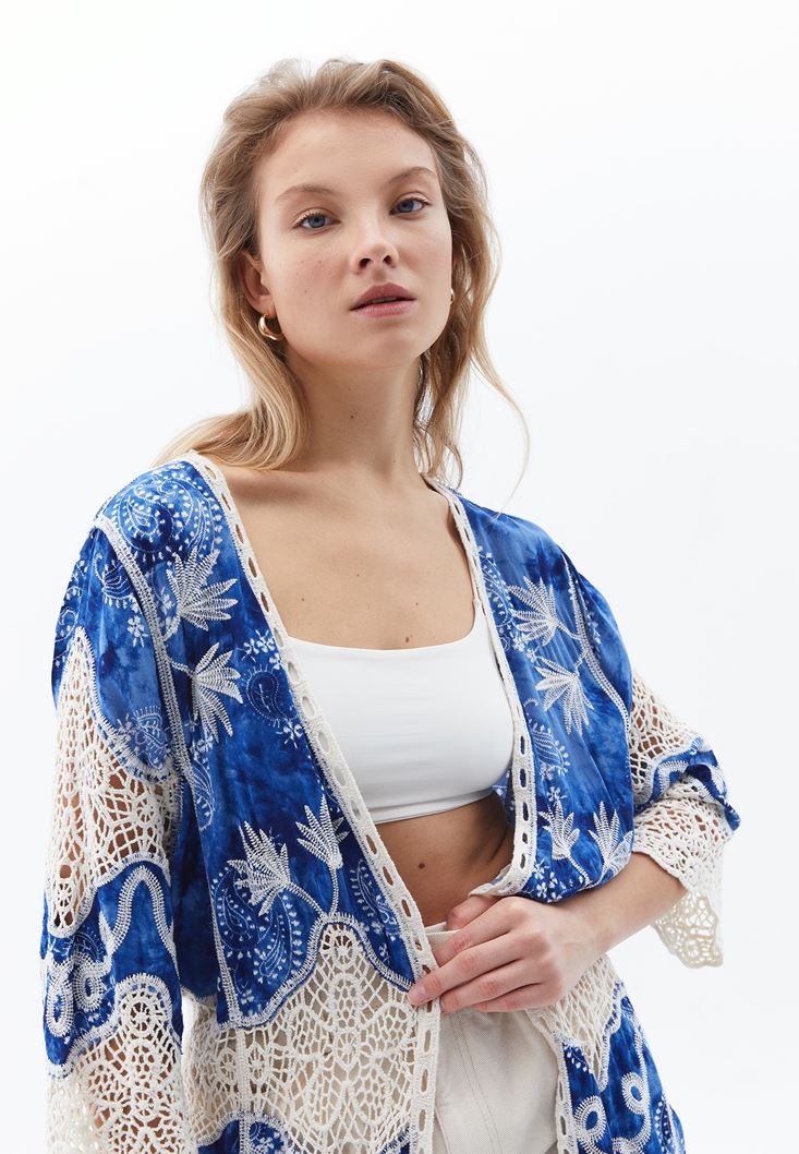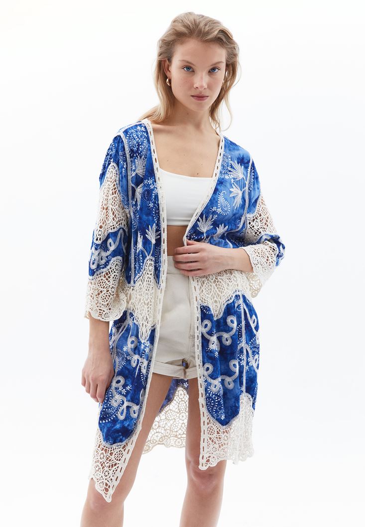 • Bayan Çok Renkli İşleme Detaylı Kimono