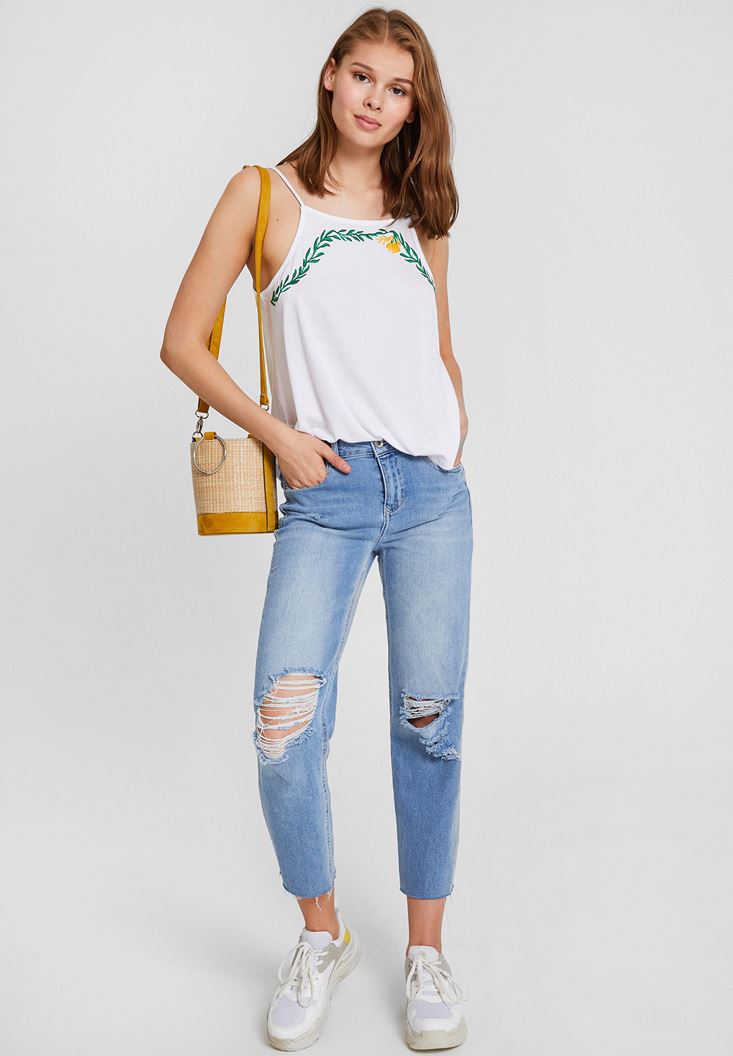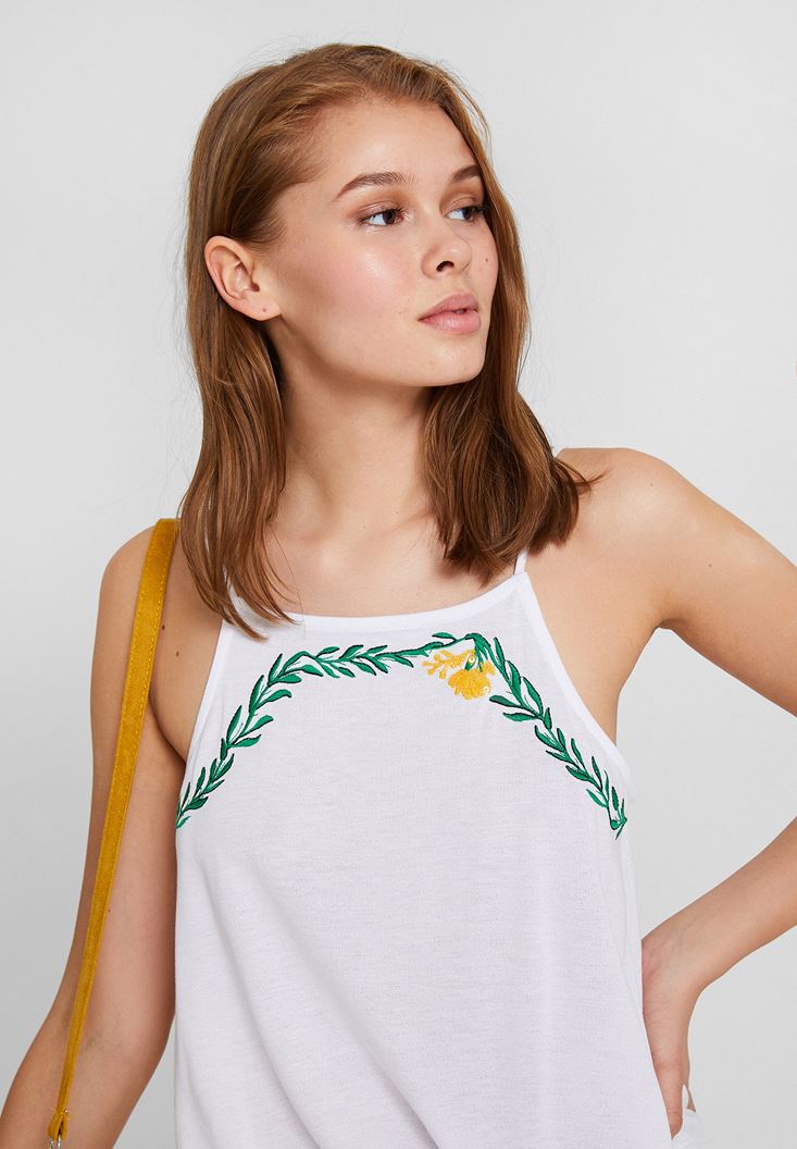 Beyaz İşlemeli Askılı Bluz