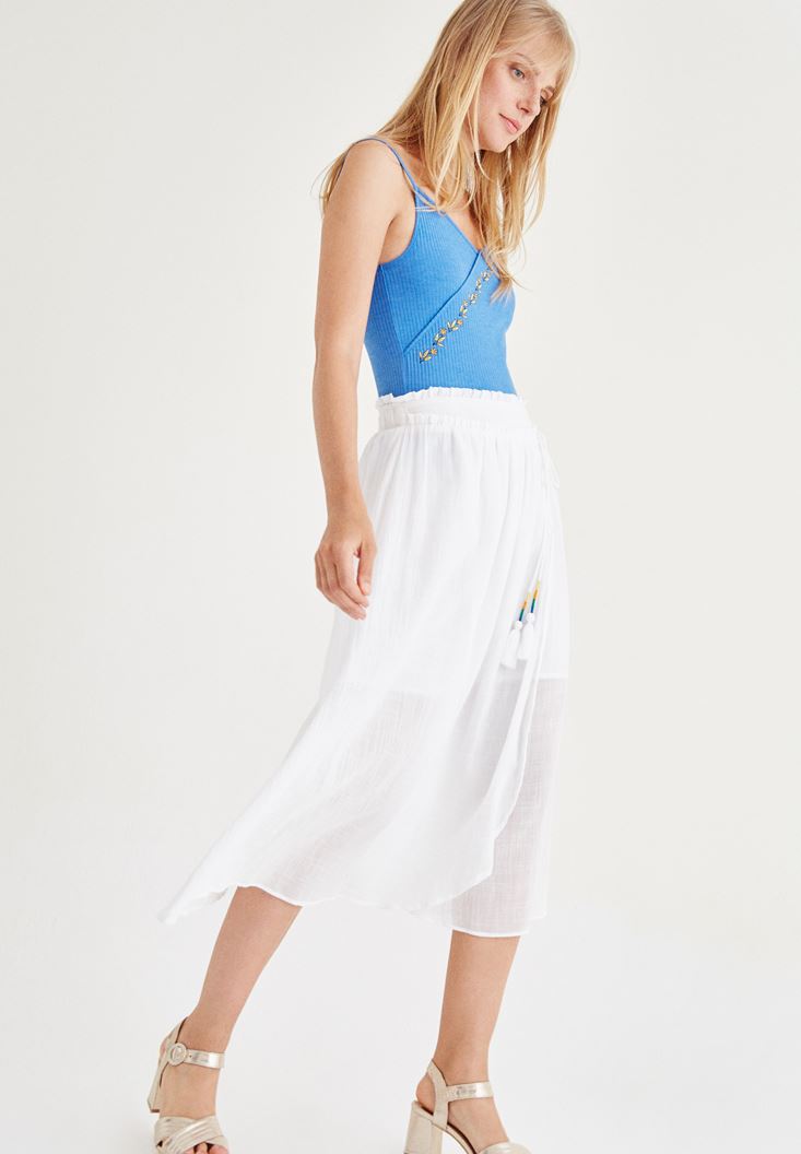 90'li yillarin izlerini kiyafetlerinize yansitan isleme trendi simdi OXXO bluzlarinda! Yaka kismindan itibaren baslayan çiçek motifli isleme, bluzunuzun sik ve zarif bir görüntü kazanmasini sagliyor. Günlük kombinlerinizde rahatça kullanabileceginiz isleme bluzu , dilerseniz kalem etekler ya da flare pantolonlar ile birlestirerek özel gecelerinizde de degerlendirebilirsiniz. Ofis giyiminizde de blazer ceketler ve skinny jeanler ile kullanildiginda ekstra siklik kazandiracak isleme bluzu minimal takilar ile tamamlayarak özgün ve dikkat çeken bir tarz olusturabilirsiniz. Ip askili yapisi ile hareket özgürlügü saglayan islemeli bluz, yumusak kumas dokusu ile de gün boyu rahat ve konforlu bir deneyim sunacak. Isleme detayi sayesinde sokak stiline ayak uydurmanizi saglayan bluz ile zamansiz sikligin keyfini çikartacaksiniz.