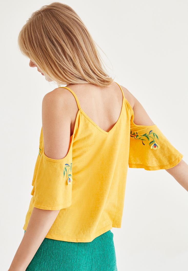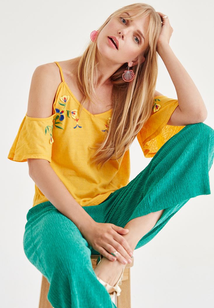 Isleme modelleri artik birçok üründe karsimiza çikmaya basladi. Bazen bir pantolonda bazen ise bir çantada bile isleme desenlerini görmek mümkün! Ama süphesiz ki islemenin en çok yakistigi ürün OXXO'nun Islemeli Bluzu oldu. Düsük omuzlu ve askili tasarimi ile yaz aylarinda tercih edilmek için önemli ayrintilara sahip olan bluza bir de isleme detaylari eklenince, artik gardirobunuzda yerini almamasi için hiçbir sebep kalmadi! Islemeli Bluz, size yaz aylarinda daha sik ve zarif hissettirecek, ayrica sahip oldugu kol ve omuz detaylari ile size göz alici bir durus kazandiracak. Islemeli Bluzu yazin tarzina uygun salas pantolonlar ile de kombin yapabilirsiniz.