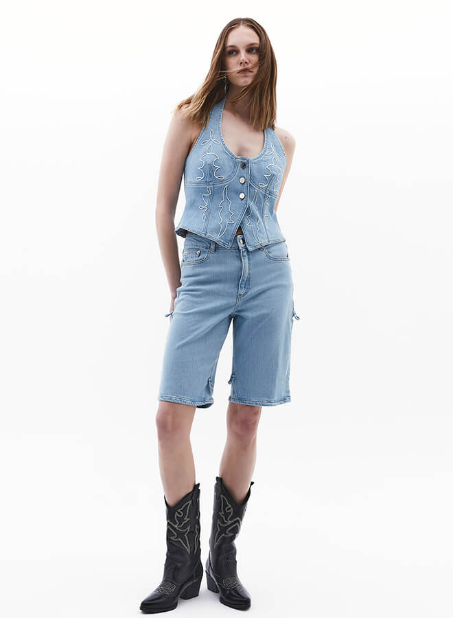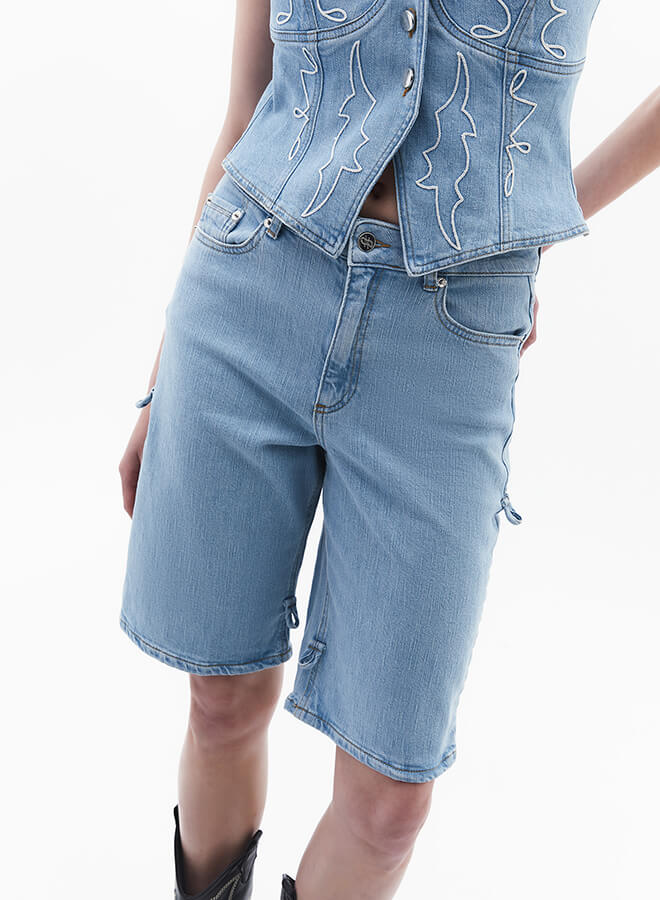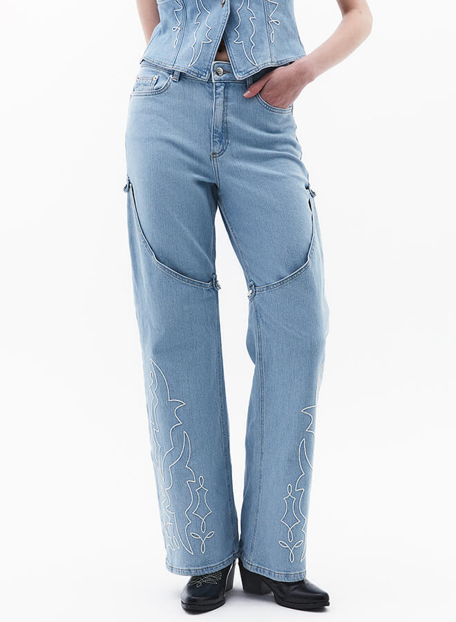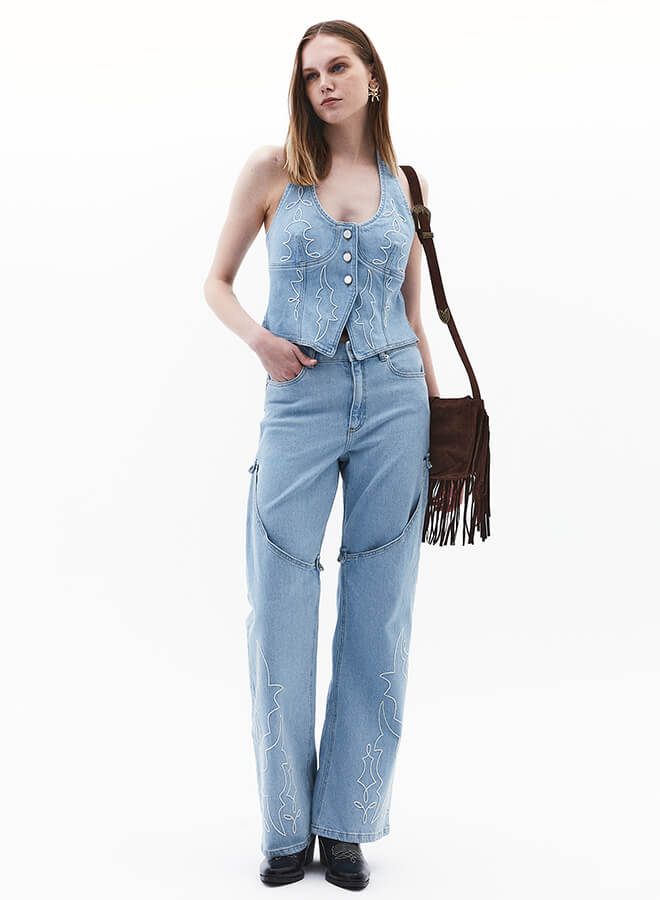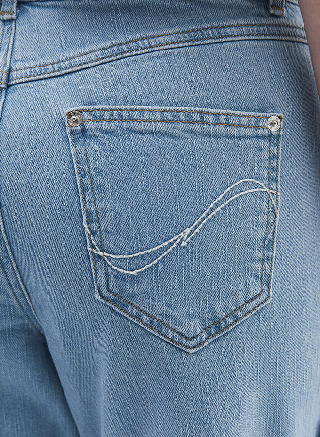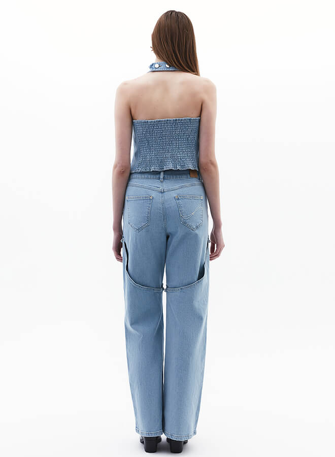 Mavi İşlevli Yüksek Bel Denim Pantolon