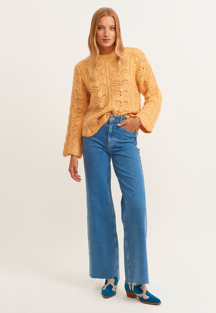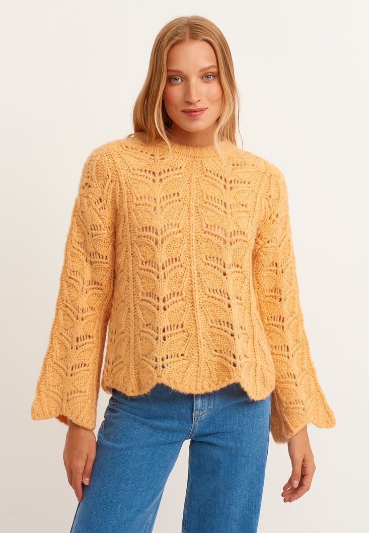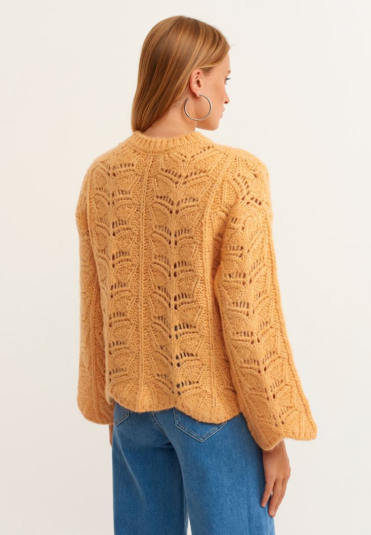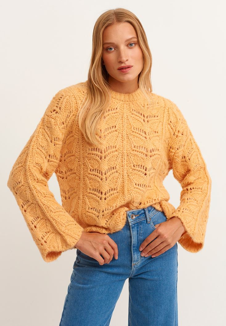 Turuncu İspanyol Kol Bohem Ajurlu Triko
