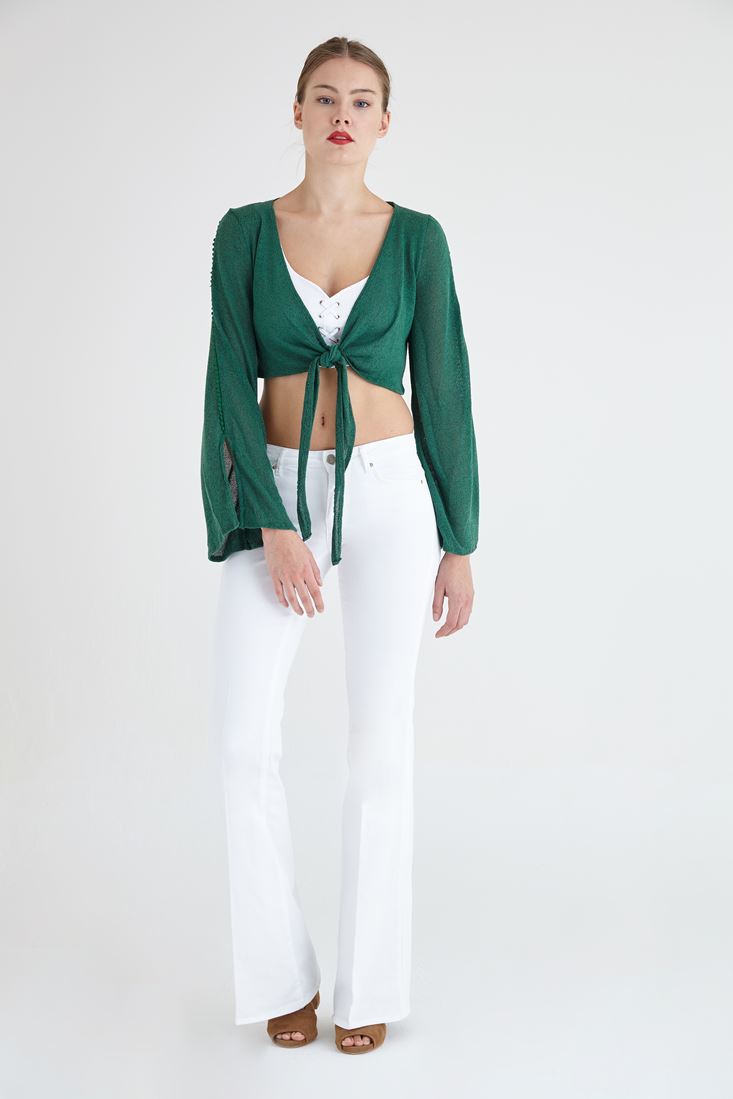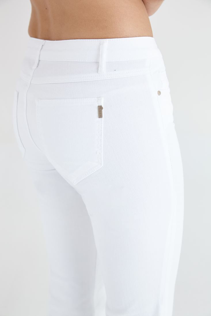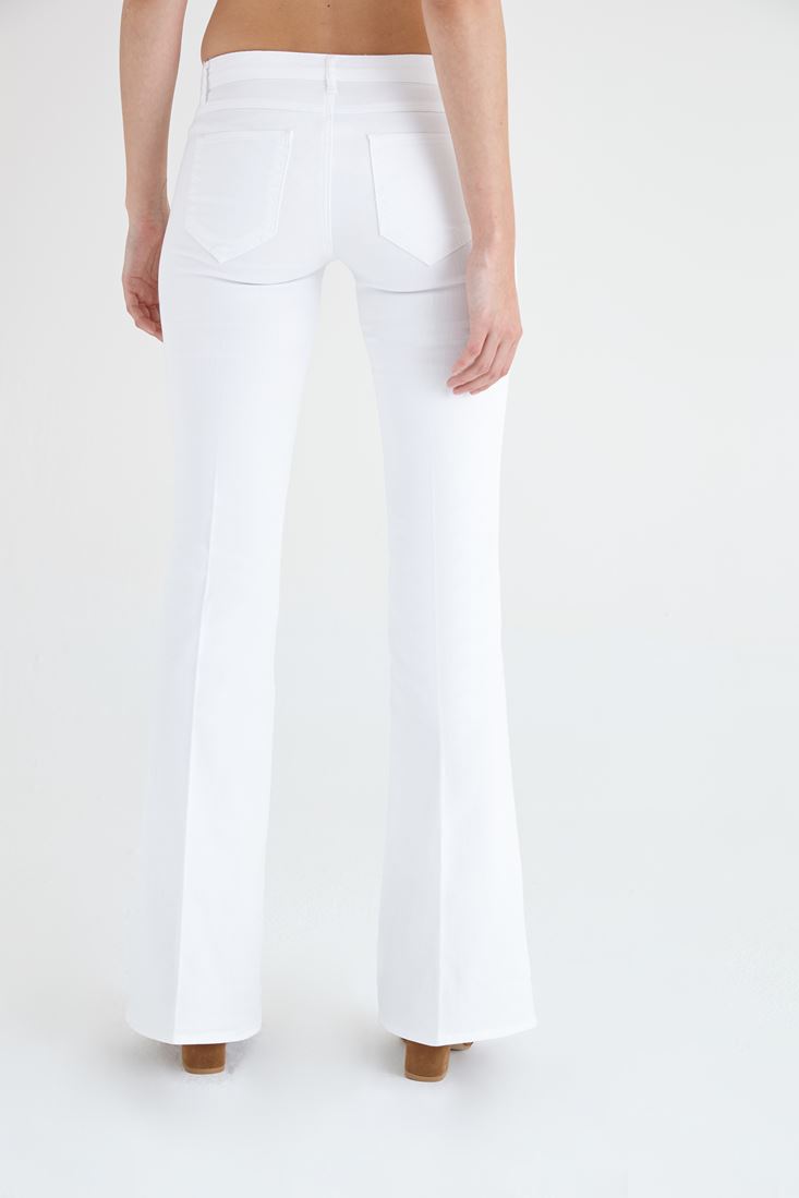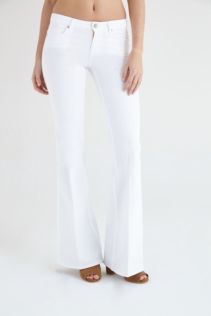 • Bayan Beyaz İspanyol Paça Düşük Bel Pantolon