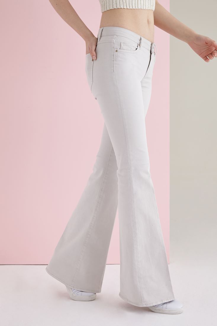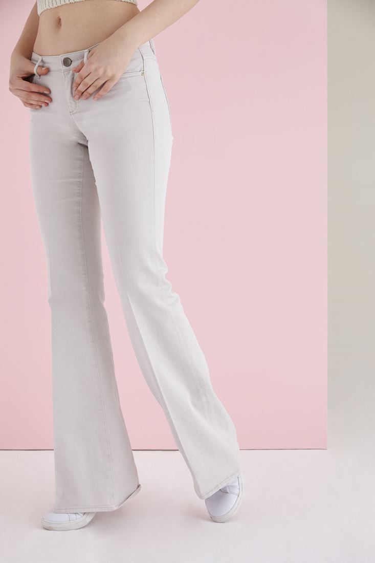 • Bayan Gri İspanyol Paça Düşük Bel Pantolon