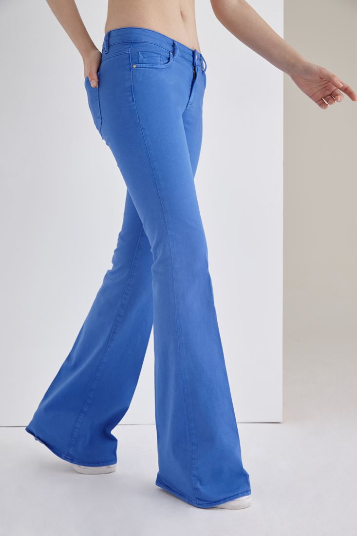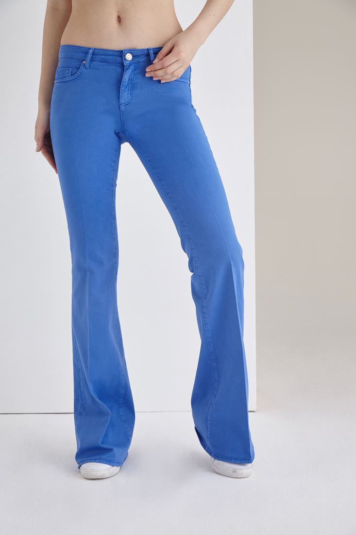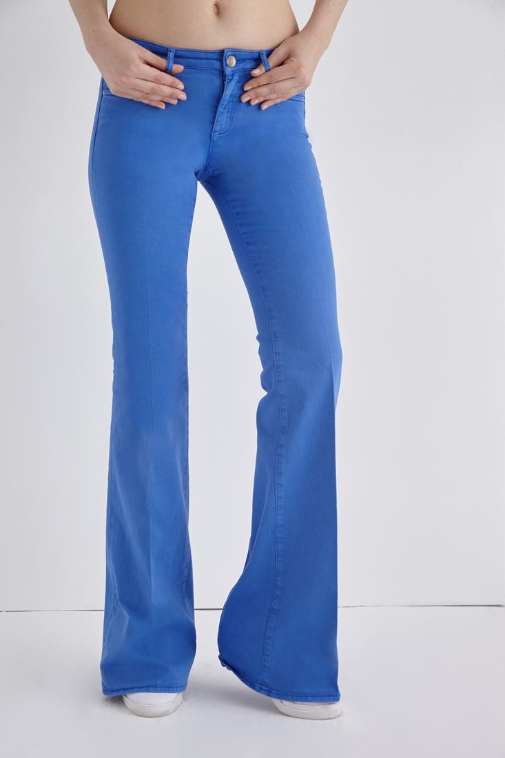 • Bayan Mavi İspanyol Paça Düşük Bel Pantolon